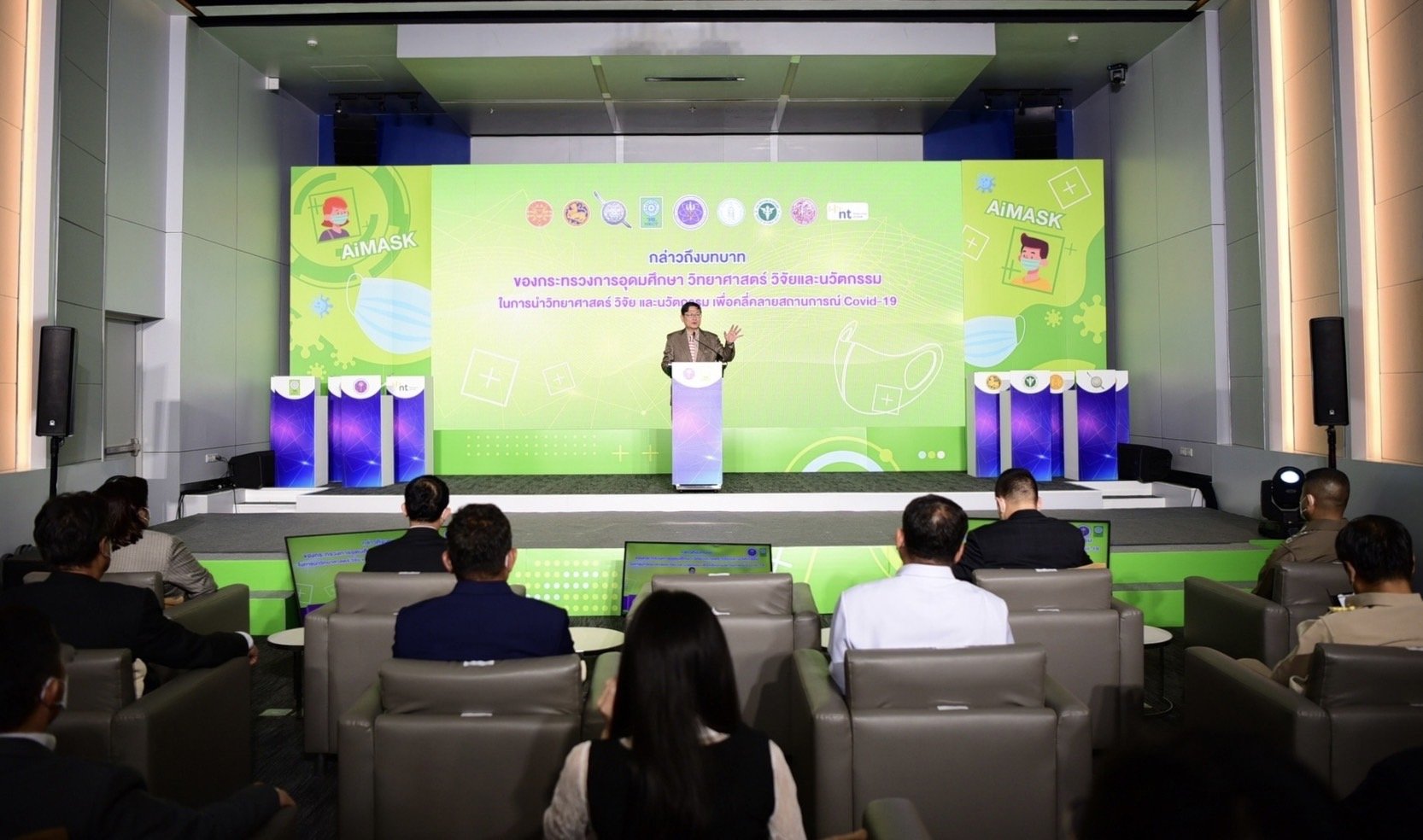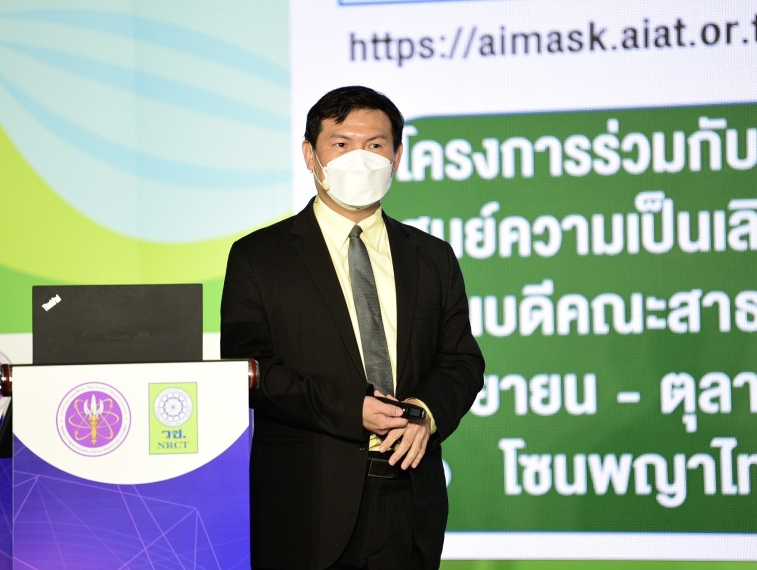 ศ.ดร.ธนารักษ์ ธีระมั่นคง กล่าวว่า ระบบปัญญาประดิษฐ์ในการประเมินการใส่หน้ากากอนามัย (AiMASK) ได้รับการสนับสนุนทุนอุดหนุนการวิจัยจาก วช. ในการดำเนินโครงการ เพื่อประมวลผลการใส่หน้ากากอนามัยของประชาชน ซึ่งระบบเอไอดังกล่าวนี้ มีประโยชน์อย่างมากเนื่องจากสามารถที่จะติดตามและวัดผลว่าประชา ชนในแต่ละพื้นที่ได้ใส่หน้ากากอนามัยหรือไม่ใส่ รวมทั้งมีการใส่แต่ไม่ถูกต้อง ซึ่งระบบสามารถประมวลผลอย่างถูกต้อง แม่นยำ รวดเร็วแบบเรียลไทม์ จึงเป็นข้อมูลสำคัญในการบริหารสถานการณ์ว่าพื้นที่ใดมีความเสี่ยง หรือในเวลาใด รวมทั้งใช้ในการประเมินภาพรวมว่าได้มีความเข้มงวดหรือระมัดระวังในการป้องกันการแพร่ระบาดมากน้อยแค่ไหน หรือที่เรียกกันโดยทั่วไปว่าการ์ดสูงหรือการ์ดตก รวมทั้งเป็นประโยชน์ในการเฝ้าระวังและหาบริเวณที่มีความเสี่ยงเพื่อจะลดโอกาสเสี่ยงได้ล่วงหน้า ทำให้ได้ข้อมูลที่เชื่อถือได้ในการเตือนประชาชนให้กระชับมาตรการในบางช่วงบางเวลาได้ด้วย ทั้งนี้ยังจะเป็นประโยชน์อย่างมากสำหรับใช้ในการติดตามสถานการณ์ในช่วงที่มีการผ่อนคลาย