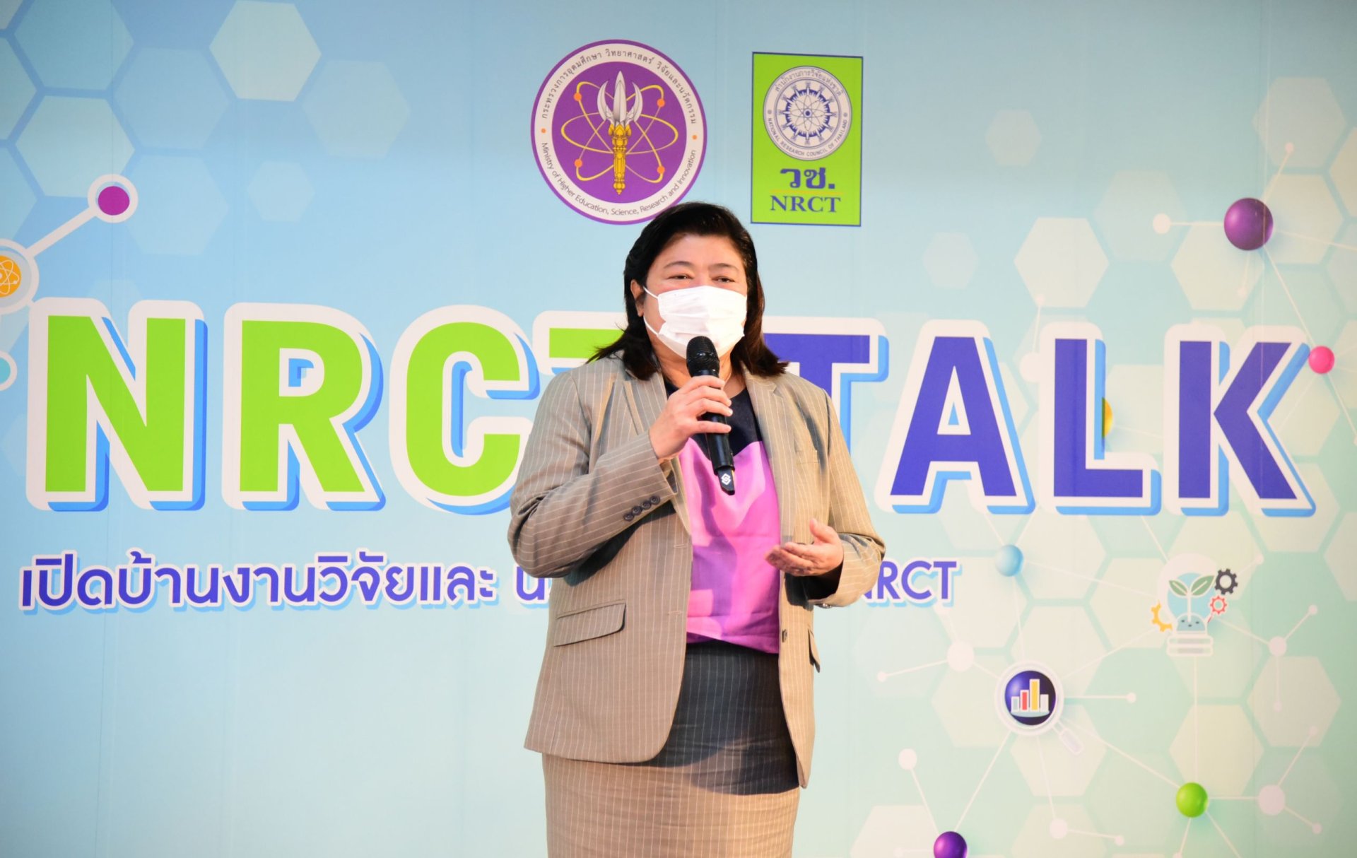 ดร.วิภารัตน์ ดีอ่อง ผู้อำนวยการสำนักงานการวิจัยแห่งชาติ กล่าวว่า กิจกรรม NRCT talk ได้จัดขึ้นอย่างต่อเนื่องเป็นครั้งที่ 10 เพื่อเป็นเวทีให้นักวิจัยได้นำเสนอผลงาน ภายใต้บทบาทของ วช. ในการให้ทุนวิจัยและนวัตกรรม รวมทั้งการให้รางวัล ประกาศเกียรติคุณ ยกย่องบุคคลหรือหน่วยงานด้านการวิจัยและนวัตกรรม ที่สร้างสรรค์ผลงานที่มีคุณค่า เพื่อสร้างแรงจูงใจ และกระตุ้นให้นักวิจัย นักประดิษฐ์ผลิตผลงานวิจัยและนวัตกรรมที่มีคุณภาพ ผลักดันไปใช้ประโยชน์ได้อย่างเป็นรูปธรรม โดยในปี 2564 นี้ วช. ได้มอบรางวัลการวิจัยแห่งชาติ ประเภทผลงานประดิษฐ์คิดค้น ระดับดี สาขาสังคมวิทยา ให้กับสิ่งประดิษฐ์ “ เครื่องกำจัดขยะอินทรีย์ภายในครัวเรือนเพื่อความยั่งยืนด้านสิ่งแวดล้อม ” ของ ดร.นรินทร์ บุญตานนท์ แห่งคณะสิ่งแวดล้อมและทรัพยากรศาสตร์ มหาวิทยาลัยมหิดล ในการลดปัญหาขยะ และการปนเปื้อนขยะอินทรีย์กับขยะประเภทอื่น ๆ อันเป็นปัญหาสำคัญของประเทศ ช่วยให้ปัญหาการจัดการขยะในชุมชนได้รับการแก้ไขอย่างถูกวิธี นับเป็นผลงานที่มีศักยภาพในการพัฒนาไปสู่ผลิตภัณฑ์อุตสาหกรรม หรือนำไปใช้ในทางอื่นได้ สร้างประโยชน์ด้านเศรษฐกิจ สังคม และความมั่นคงของประเทศให้ยั่งยืน