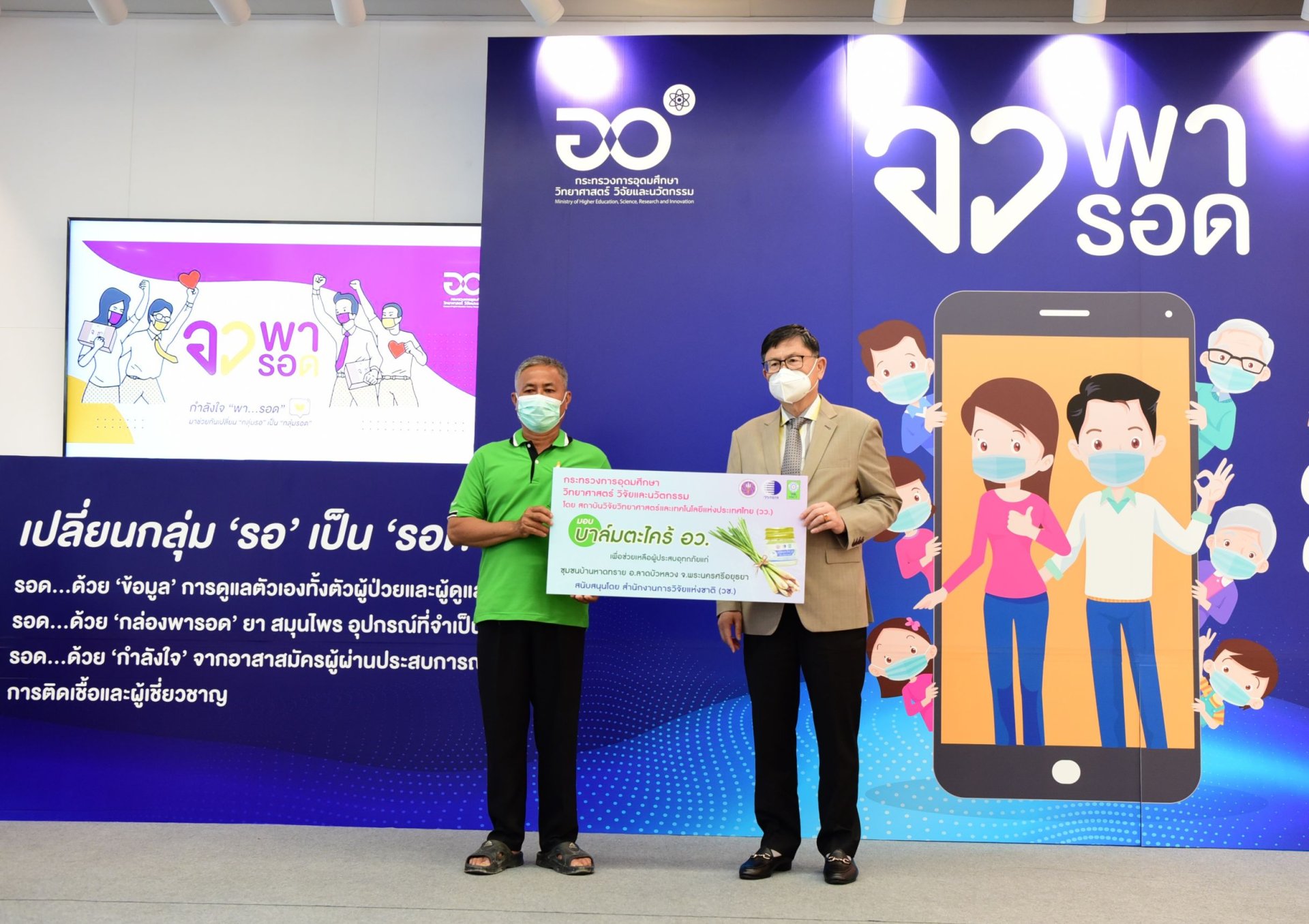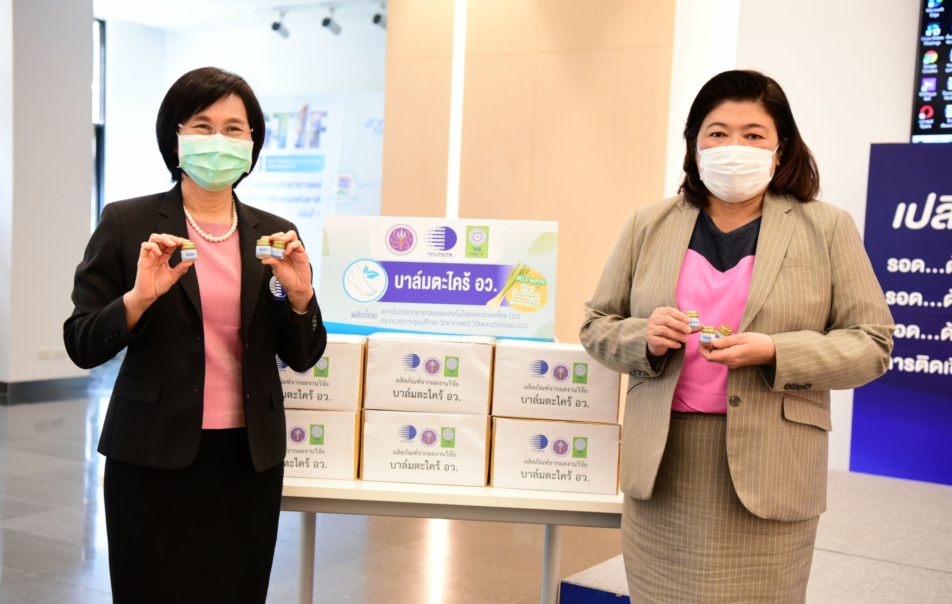 กระทรวงการอุดมศึกษา วิทยาศาสตร์ วิจัยและนวัตกรรม (อว.) สถาบันวิจัยวิทยาศาสตร์และเทคโนโลยีแห่งประเทศไทย (วว.) และสำนักงานการวิจัยแห่งชาติ (วช.) ร่วมส่งมอบผลิตภัณฑ์บาล์มตะไคร้ ให้ผู้แทนชุมชนจากจังหวัดพระนครศรีอยุธยาและจังหวัดสุพรรณบุรี นำไปใช้รักษาโรคน้ำกัดเท้าในช่วงสถานการณ์อุทกภัย และส่งมอบต้นฟ้าทะลายโจร เพื่อป้องกันโควิด-19 โดยมี ศาสตราจารย์ (พิเศษ) ดร.เอนก เหล่าธรรมทัศน์ รัฐมนตรีว่าการกระทรวงการอุดมศึกษา วิทยาศาสตร์ วิจัยและนวัตกรรม เป็นประธานในพิธี ณ อาคารสำนักงานพัฒนาวิทยาศาสตร์และเทคโนโลยีแห่งชาติ (สวทช.) กรุงเทพมหานคร