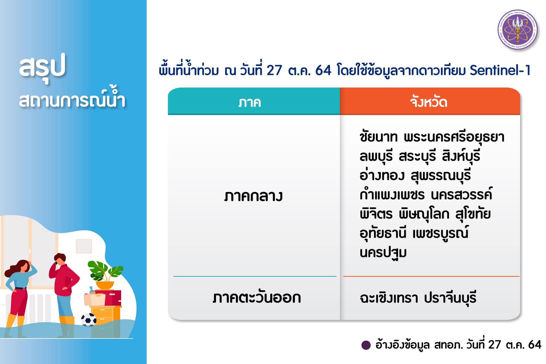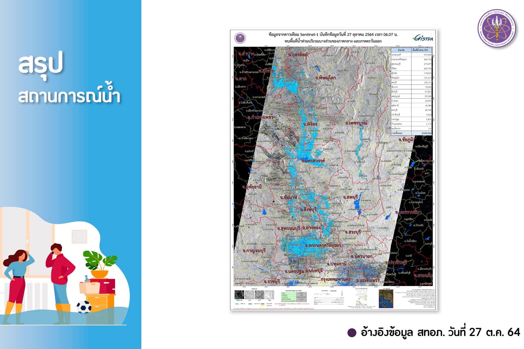 รายงานการติดตามพื้นที่น้ำท่วมปี 2564 โดยใช้ข้อมูลจากดาวเทียม COSMO-SkyMed-1 เเละ ดาวเทียม COSMO-SkyMed-4 จากสำนักงานพัฒนาเทคโนโลยีอวกาศและภูมิสารสนเทศ (องค์การมหาชน) (สทอภ.)
