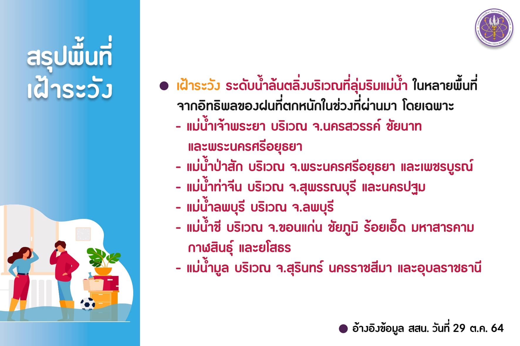 สรุปพื้นที่เฝ้าระวังและสถานการณ์น้ำจาก ThaiWater คลังข้อมูลน้ำแห่งชาติ จากสถาบันสารสนเทศทรัพยากรน้ำ (องค์การมหาชน) (สสน.)
