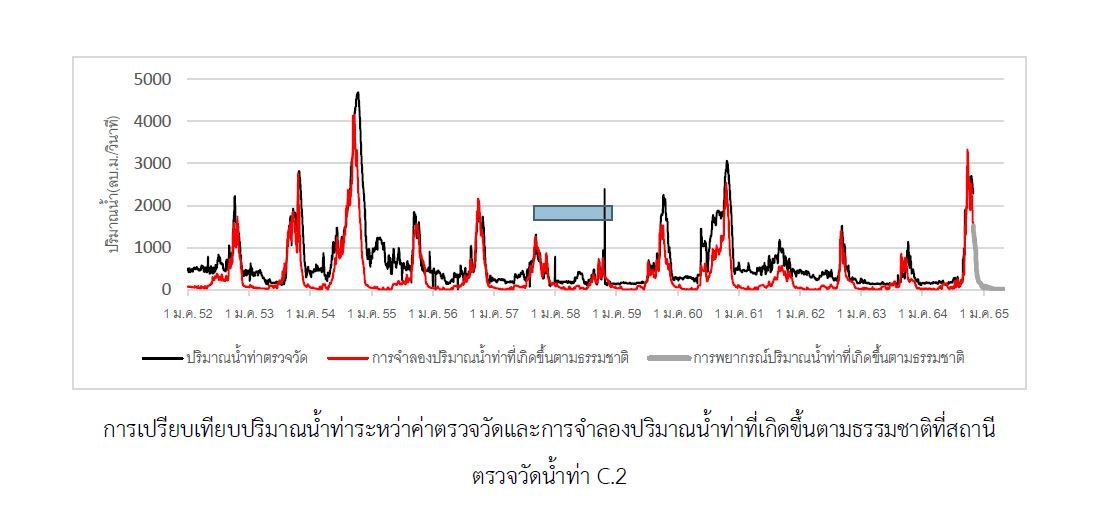 ดร.จุติเทพ วงษ์เพ็ชร์ อาจารย์ประจำภาควิชาวิศวกรรมชลประทาน คณะวิศวกรรมศาสตร์ กำแพงแสนมหาวิทยาลัยเกษตรศาสตร์ ได้เปิดเผยถึง ผลการศึกษาภายใต้กิจกรรม CO-RUN แผนงานวิจัยเข็มมุ่งด้านการบริหารจัดการน้ำ ของสำนักงานการวิจัยแห่งชาติ (วช.) ว่า การคาดการณ์ปริมาณน้ำท่าผิวดินที่เกิดขึ้นในพื้นที่ราบภาคกลาง ตั้งแต่ท้ายเขื่อนภูมิพลและเขื่อนสิริกิติ์ จนถึง จ. นครสวรรค์ บริเวณสถานีตรวจวัดน้ำท่า C.2 โดยใช้แบบจำลองน้ำฝน-น้ำท่าและการบริหารจัดการน้ำ ร่วมกับผลการพยากรณ์ฝนล่วงหน้า 6 เดือนด้วยแบบจำลอง WRF-ROM (CFS2V) ตั้งแต่เดือน พ.ย. 2564-เม.ย. 2565 พบว่า ปริมาณฝนสะสมในช่วงระยะเวลาดังกล่าวมีค่าประมาณ 5-30 มม.เท่านั้น นอกจากนี้พบว่า ปริมาณน้ำท่าตามธรรมชาติที่คาดการณ์ว่าจะเกิดขึ้นบริเวณสถานีตรวจวัดน้ำท่า C.2 ในช่วงเดือน ธ.ค. 2564-เม.ย. 2565 มีปริมาณเพียง 610 ล้านลูกบาศก์เมตร คิดเป็น 11 เปอร์เซ็นต์ของปริมาณความต้องการน้ำตามแผนการจัดสรรน้ำในฤดูแล้ง โดยการบริหารจัดการน้ำในลุ่มน้ำเจ้าพระยาในช่วงระยะเวลาดังกล่าว จะต้องอาศัยปริมาณน้ำต้นทุนจาก 4 เขื่อนข้างต้นเป็นหลัก และต้องควบคุมการใช้น้ำให้เป็นไปตามแผนการจัดสรรน้ำ เพื่อไม่ให้เกิดปัญหาการขาดแคลน โดยเฉพาะอย่างยิ่งสำหรับใช้ในการปลูกข้าวนาปรังช่วงฤดูแล้ง และช่วงต้นฤดูฝน (เดือน พ.ค. 65-ก.ค. 65) ตามที่กรมชลประทานได้คาดการณ์พื้นที่เพาะปลูกข้าวนาปรังในลุ่มน้ำเจ้าพระยาตามแผนการจัดสรรน้ำ จำนวน 2.8 ล้านไร่ ซึ่งมีปริมาณการใช้น้ำประมาณ 1,970 ล้านลูกบาศก์เมตร หรือคิดเป็น 35 เปอร์เซ็นต์ของการใช้น้ำทั้งหมด เห็นได้ว่า ปริมาณน้ำต้นทุนยังมีอย่างจำกัด
