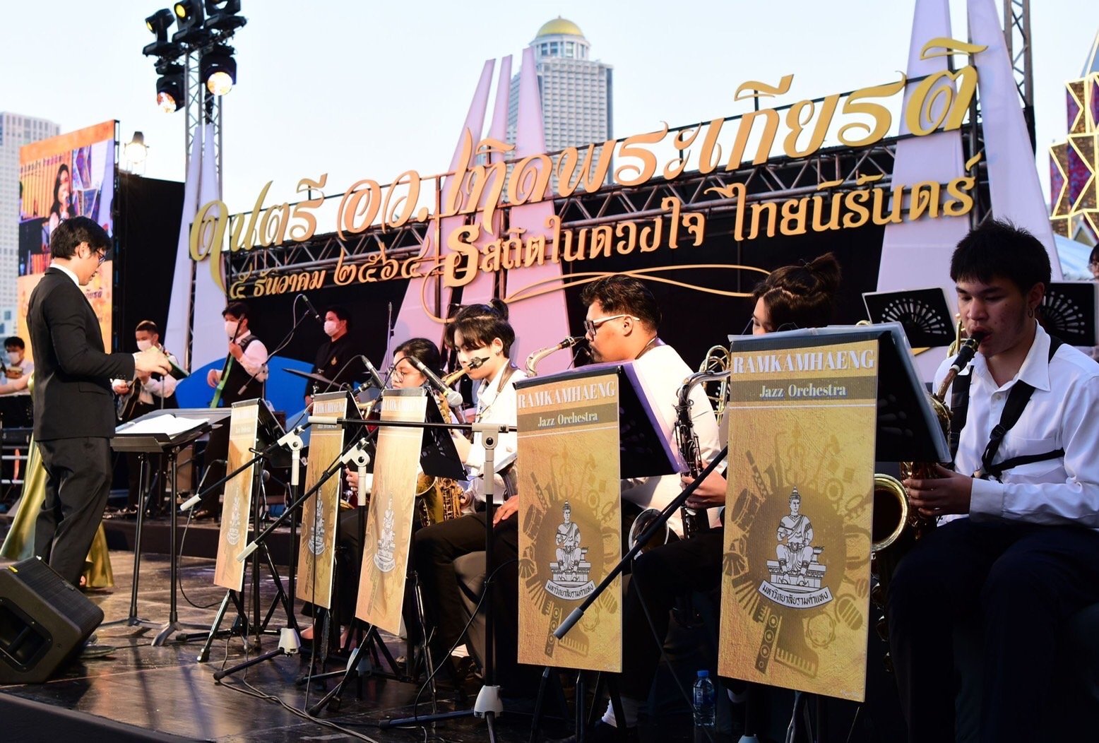 โดยมี รศ.ดร.พาสิทธิ์ หล่อธีรพงศ์ รองปลัดกระทรวงอว. ดร.วิภารัตน์ ดีอ่อง ผู้อำนวยการ วช. และแขกผู้มีเกียรติร่วมชมการแสดง ซึ่งการแสดงในวันนี้ ได้รับเกียรติจากวง “RU Jazz Orchestra" จากมหาวิทยาลัยรามคำแหง เป็นวงดนตรีประเภทแจ๊สบิกแบนด์ ที่รวมนักศึกษาจากคณะศิลปกรรมศาสตร์ และนักเรียนจากชมรมดนตรีสากลโรงเรียนสาธิตมหาวิทยาลัยรามคำแหงฝ่ายมัธยม มีอาจารย์กิติภัทร ภูซะปัจฉิม และอาจารย์ประพันธ์พงศ์ มณีวงษ์ เป็นผู้ควบคุมการฝึกซ้อม และอำนวยการแสดงโดย ผศ.กรสรวง ปาณินท์ ถ่ายทอดบทเพลงพระราชนิพนธ์ ซึ่งถือเป็นการนำบทเพลงพระราชนิพนธ์ มาผสมผสานกับแนวดนตรีสมัยใหม่ได้อย่างลงตัว
