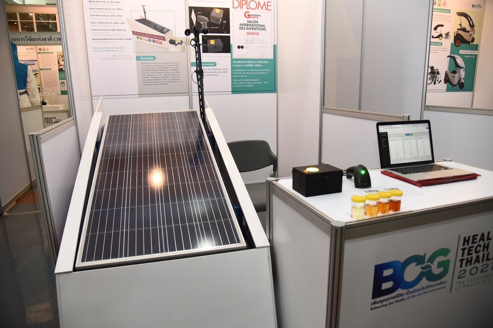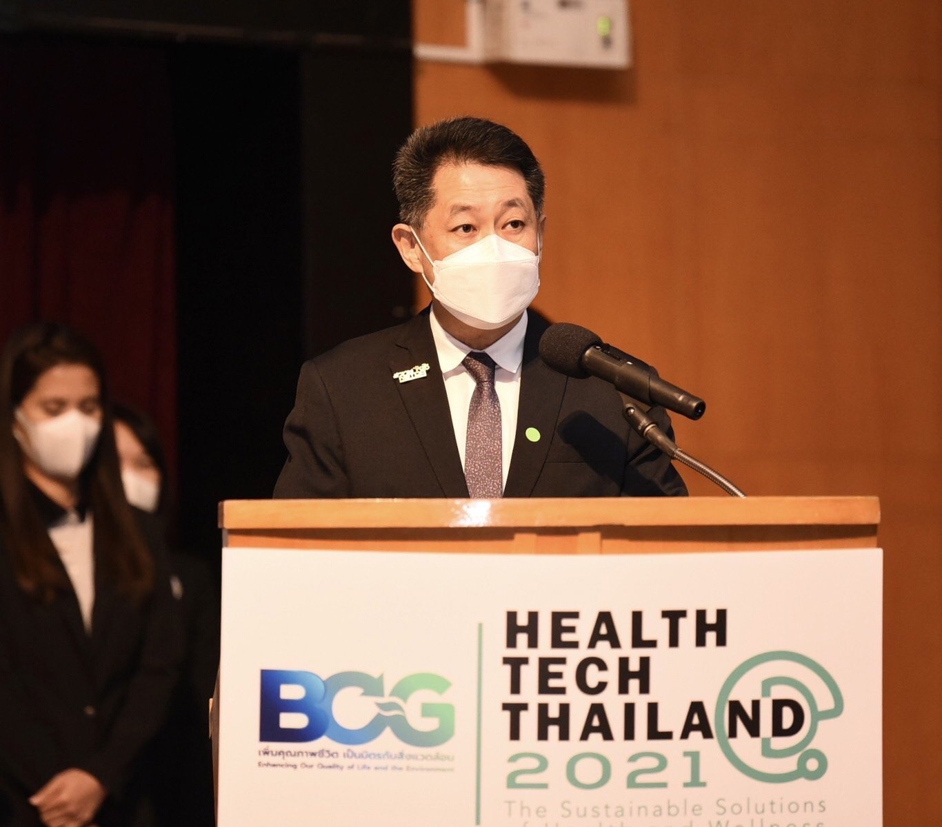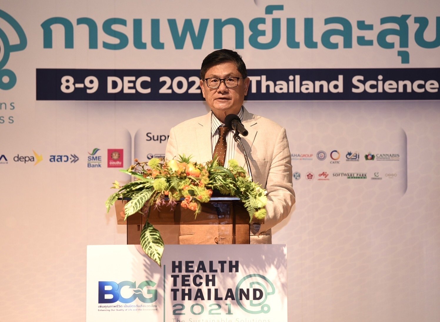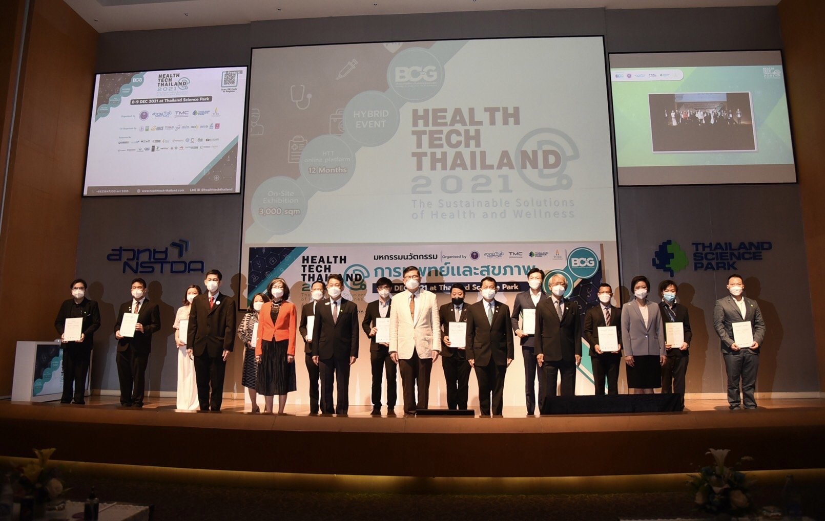 (8 ธันวาคม 2564) ณ ศูนย์ประชุมอุทยานวิทยาศาสตร์ประเทศไทย สวทช. อ.คลองหลวง จ.ปทุมธานี : กระทรวงการอุดมศึกษา วิทยาศาสตร์ วิจัยและนวัตกรรม (อว.) โดยอุทยานวิทยาศาสตร์ประเทศไทย สำนักงานพัฒนาวิทยาศาสตร์และเทคโนโลยีแห่งชาติ (สวทช.) ร่วมกับองค์กรพันธมิตร สำนักงานส่งเสริมการจัดประชุมและนิทรรศการ (สสปน.) ศูนย์ความเป็นเลิศด้านชีววิทยาศาสตร์ (TCELS) และพันธมิตรทั้งภาครัฐ และภาคเอกชนกว่า 150 หน่วยงาน จาก 7 เขตเศรษฐกิจ จัดงาน “มหกรรมนวัตกรรมการแพทย์และสุขภาพ (BCG Health Tech Thailand 2021)” ระหว่างวันที่ 8 - 9 ธันวาคม 2564 ในรูปแบบไฮบริด อีเวนต์ (Hybrid Event) ขานรับนโยบายโมเดลเศรษฐกิจใหม่ BCG Economy Model เพื่อยกระดับคุณภาพชีวิตของคนในประเทศอย่างทั่วถึง โดยได้รับเกียรติจาก