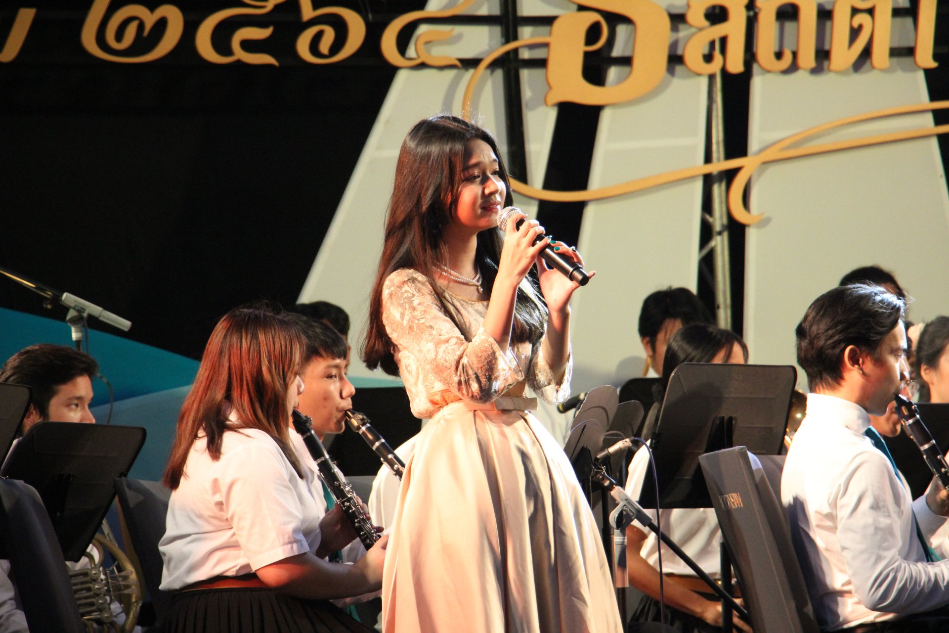 สำหรับวงดุริยางค์เครื่องลมศิลปากร เป็นการรวมกลุ่มนักดนตรีในคณะดุริยางคศาสตร์ มหาวิทยาลัยศิลปากร บรรเลงเพลงดนตรีคลาสสิกและเพลงร่วมสมัย สมาชิกของวงล้วนมีประสบการณ์การเล่นดนตรีในระดับประเทศและในระดับนานาชาติ อาทิ 130 Anniversary of Japan - Thailand Relations Concert Conducted by Yasuhide lto. เป็นต้น และยังได้เคยร่วมงานกับศิลปินระดับโลกอย่าง Johan de Meji Bert Appermont Yesuhide lto และอาจารย์ดำริห์ บรรณวิทยกิจ ภายใต้การควบคุมวงโดย อาจารย์นาวี หงสกุล ในวันนี้ได้บรรเลงเพลงพระราชนิพนธ์หลายบทเพลง เช่น ความฝันอันสูงสุด ต้นไม้ของพ่อ ใกล้รุ่ง แผ่นดินของเรา ลมหนาว อาทิตย์อับแสง และอีกหลาย ๆ บทเพลง สลับกับเพลงบรรเลง Jazz ชะตาชีวิต สร้างความสุข ความเพลิดเพลิน และความประทับใจให้กับประชาชนที่เข้ารับชมรับฟัง