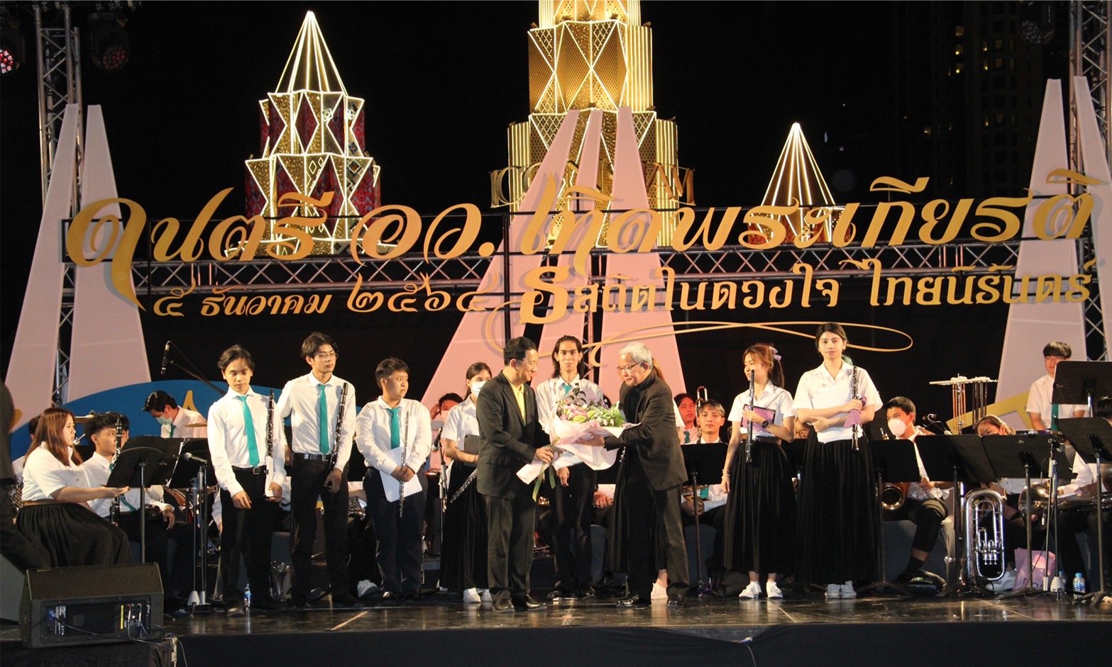 12 ธันวาคม 2564 ดนตรี อว. เทิดพระเกียรติ ธ สถิตในดวงใจ ไทยนิรันดร์ ซึ่ง กระทรวงการอุดมศึกษา วิทยาศาสตร์ วิจัยและนวัตกรรม (อว.) โดย สำนักงานการวิจัยแห่งชาติ (วช ) จัดขึ้นระหว่างวันที่ 5-19 ธันวาคม 2564 ในเย็นวันนี้ ที่ลานริเวอร์พาร์ค ไอคอนสยาม ศ. ดร. นพ. สิริฤกษ์ ทรงศิวิไล ปลัดกระทรวง อว. เป็นประธานพร้อมด้วย ดร.วิภารัตน์ ดีอ่อง ผู้อำนวยการสำนักงานการวิจัยแห่งชาติ และอธิการบดีมหาวิทยาลัยศิลปากรโดยแต่ละวันจะเป็นการจัดแสดงดนตรีของมหาวิทยาลัยซึ่งเป็นหน่วยงานในสังกัด อว. โดยวันนี้เป็นวงดนตรีจากมหาวิทยาลัยศิลปากร