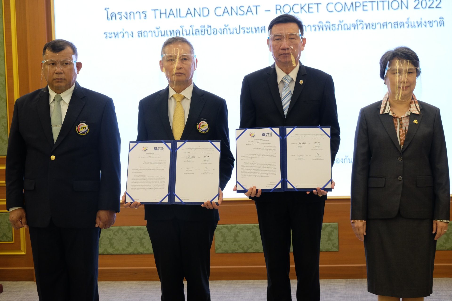 สถาบันเทคโนโลยีป้องกันประเทศ (สทป.) ร่วมกับองค์การพิพิธภัณฑ์วิทยาศาสตร์แห่งชาติ (อพวช.) จัดพิธีลงนามความร่วมมือจัดการแข่งขัน “Thailand CANSAT ROCKET Competition 2022” โดยจะเปิดรับสมัครกลางเดือนมกราคม 2565 เพื่อเปิดโอกาสให้เยาวชนในระดับชั้นมัธยมศึกษาตอนปลายที่สนใจการประดิษฐ์ดาวเทียมขนาดเล็ก (CANSAT) และจรวดเชื้อเพลิงน้ำตาล (Sugar Rocket) ได้นำเสนอแนวคิด ทฤษฎี และประดิษฐ์ผลงานเข้าแข่งขัน มุ่งหวังสร้างแรงบันดาลใจให้กับเยาวชนในการเรียนรู้เทคโนโลยีอวกาศและเทคโนโลยีดาวเทียม เพื่อนำไปสู่การพัฒนาต่อยอดเทคโนโลยีและนวัตกรรมของประเทศ พร้อมก้าวเข้าสู่การแข่งขันเวทีระดับนานาชาติต่อไป โดยพิธีจัดขึ้น ณ ห้องราชเสนีพิทักษ์ ชั้น 10 สถาบันเทคโนโลยีป้องกันประเทศ วันที่ 15 ธันวาคม 2564