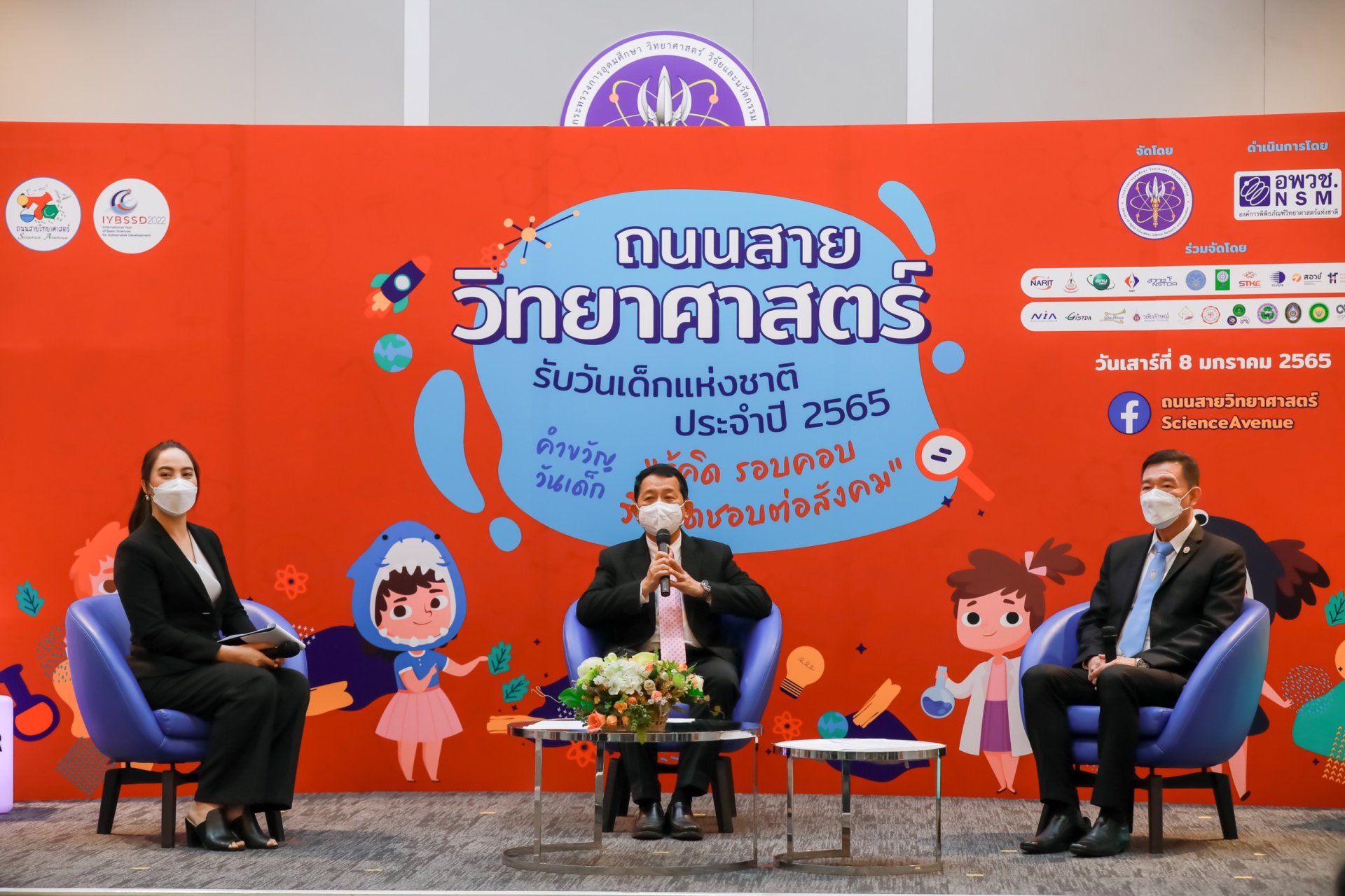 กระทรวงการอุดมศึกษา วิทยาศาสตร์ วิจัยและนวัตกรรม (อว.) โดยองค์การพิพิธภัณฑ์วิทยาศาสตร์แห่งชาติ (อพวช.) ผนึกกำลังภาครัฐและเอกชนทั่วประเทศ จัดงาน “ถนนสายวิทยาศาสตร์ รับวันเด็กแห่งชาติ ประจำปี 2565” ชวนเยาวชนรู้คิดรู้รอบเรื่องวิทย์ฯ ขนความสนุกด้านวิทยาศาสตร์จัดเต็ม 2รูปแบบ Online และ On Hands กระจายความสนุกทุกพื้นที่ทั่วประเทศ พร้อมเปิดโอกาสให้เยาวชนและผู้ปกครองสัมผัสประสบการณ์จริง ในวันเสาร์ที่ 8 มกราคม 2565 นี้