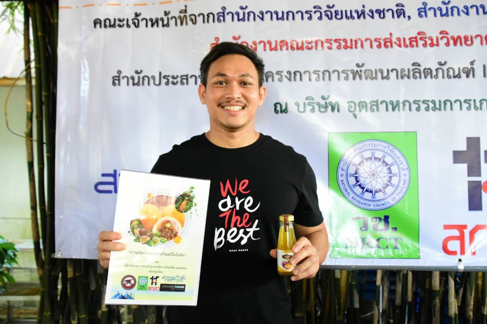 ด้าน ผศ.ดร.นรภัทร หวันเหล็ม อาจารย์ประจำคณะเกษตรศาสตร์ ทรัพยากรธรรมชาติและสิ่งแวดล้อม แห่งมหาวิทยาลัยนเรศวร หัวหน้าโครงการ “การผลิตน้ำเสาวรสเสริมพรีไบโอติกบรรจุกระป๋อง” เปิดเผยว่า นักวิจัย และบริษัท อุตสาหกรรมการเกษตรเขาค้อ จำกัด ได้ร่วมกันพัฒนาสูตรและกระบวนการผลิตผลิตภัณฑ์น้ำเสาวรสเสริมพรีไบโอติกบรรจุกระป๋องให้มีคุณค่าทางสุขภาพมากกว่าเดิม ตอบโจทย์ผู้บริโภคยุคใหม่ที่รักสุขภาพ โดยเสริมพรีไบโอติก คือ ฟรุกโตโอลิโกแซ็กคาไรด์ และอินูลิน ที่ร่างกายไม่สามารถย่อยได้เองเข้าไปเสริมกับโพรไบโอติกในลำไส้ ให้ช่วยปรับสมดุลระบบทางเดินอาหารให้ดีขึ้น ป้องกันจุลินทรีย์ที่ก่อโรคในลำไส้ อาทิ มะเร็งลำไส้ อีกทั้งน้ำตาลในน้ำเสาวรส สามารถช่วยเรื่องการดูดซึมน้ำตาลของผู้ป่วยเบาหวานได้ด้วย เหมาะสมกับผู้บริโภคทุกเพศทุกวัย ซึ่งขณะนี้ อยู่ในช่วงตรวจสอบ Commercial Product คาดว่าจะพร้อมออกจำหน่ายในเร็ว ๆ นี้