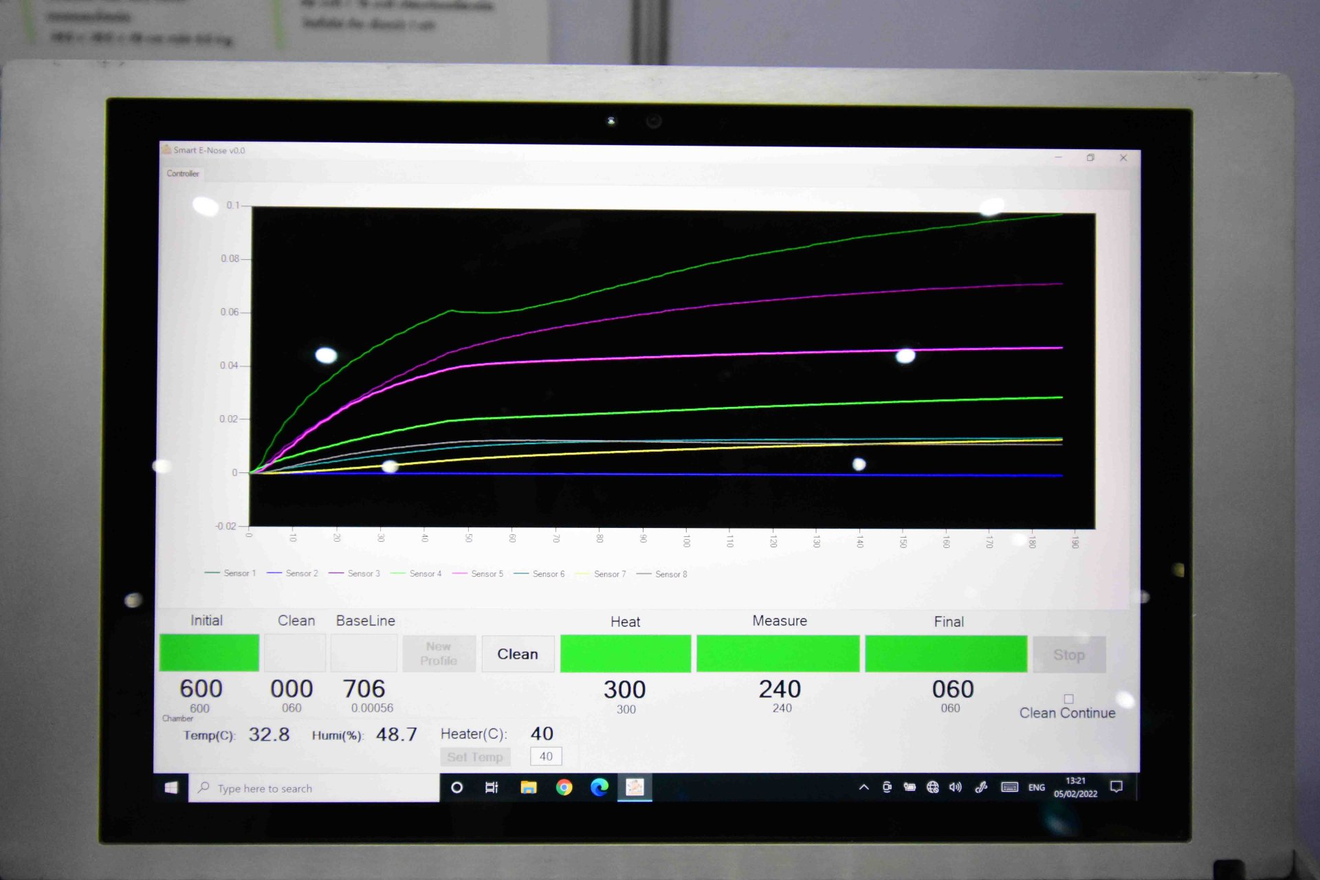 ดร.อดิสร เตือนตรานนท์ รองผู้อำนวยการศูนย์เทคโนโลยีเพื่อความมั่นคงของประเทศและการประยุกต์เชิงพาณิชย์ สำนักงานพัฒนาวิทยาศาสตร์และเทคโนโลยีแห่งชาติ (สวทช.) กล่าวต่อว่า การทดลองใช้เครื่องได้รับความร่วมมือจากสถาบันวิทยาศาสตร์ข้าวแห่งชาติ นำตัวอย่างจากโรงสีข้าวมาทดสอบด้วยนวัตกรรมหอมข้าว : อุปกรณ์ตรวจสอบความหอมในข้าวหอมมะลิ แบบพกพาด้วยเทคนิคปัญญาประดิษฐ์ และเปรียบเทียบกับผลที่วัดได้จากเครื่อง GC (gas chromatography) ซึ่งเป็นวิธีดั้งเดิมที่ทาง สถาบันวิทยาศาสตร์ข้าวแห่งชาติ ใช้ตรวจสอบค่า 2AP ผลปรากฏว่า นวัตกรรมหอมข้าว : อุปกรณ์ตรวจสอบความหอมในข้าวหอมมะลิ แบบพกพาด้วยเทคนิคปัญญาประดิษฐ์ สามารถวัดได้แม่นยำมากกว่า 90%