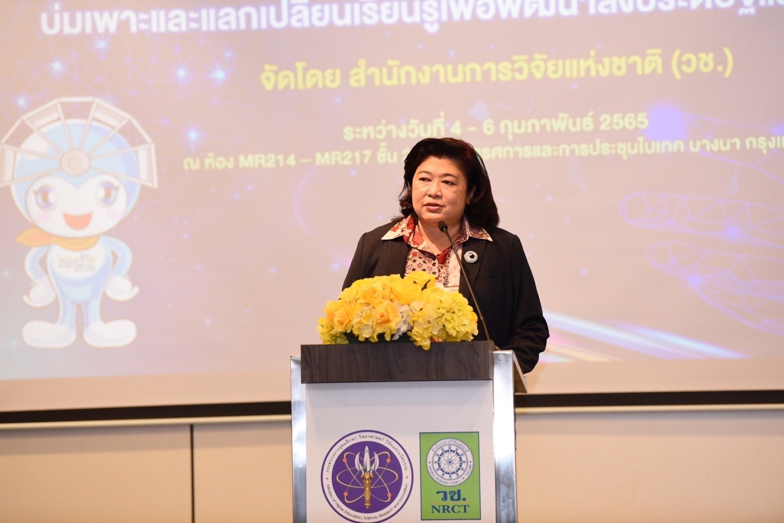ดร.วิภารัตน์ ดีอ่อง ผู้อำนวยการสำนักงานการวิจัยแห่งชาติ กล่าวว่า สำนักงานการวิจัยแห่งชาติ (วช.) ภายใต้กระทรวงการอุดมศึกษา วิทยาศาสตร์ วิจัยและนวัตกรรม (อว.) ได้จัดกิจกรรมการเพิ่มศักยภาพและมาตรฐานบุคลากรอุดมศึกษามาอย่างต่อเนื่อง ภายในงานวันนักประดิษฐ์ ทำให้เราได้เห็นภาพผลิตกรรมจากนักศึกษาสายอุดมศึกษาทั้งจากส่วนกลาง และส่วนภูมิภาค จำนวนหลายสถาบัน ที่ได้มุ่งมั่นตั้งใจนำเสนอความก้าวหน้าผลงาน อันสะท้อนการเติบโตของนักประดิษฐ์ นักวิจัย รวมทั้งพัฒนาการของผลิตกรรมที่มีความแปลกใหม่ น่าสนใจ โดยได้รับคำแนะนำ ความรู้ แรงบันดาลใจจากวิทยากรผู้เชี่ยวชาญ เพื่อบ่มเพาะนักประดิษฐ์ นักวิจัยเพื่อสร้างประโยชน์ให้แก่ประเทศชาติต่อไป นอกจากการอบรมแล้ว วช.ยังพร้อมสนับสนุนให้เกิดการต่อยอดนวัตกรรมไปสู่เชิงพาณิชย์ และหวังว่าในปีต่อ ๆ ไป โครงการฝึกอบรมบ่มเพาะบุคลากรอุดมศึกษานี้ จะมีสมาชิกเข้าร่วมเพิ่มมากขึ้น