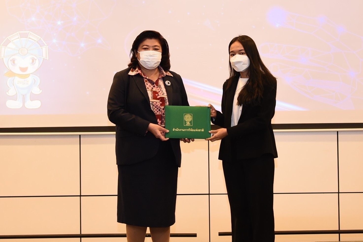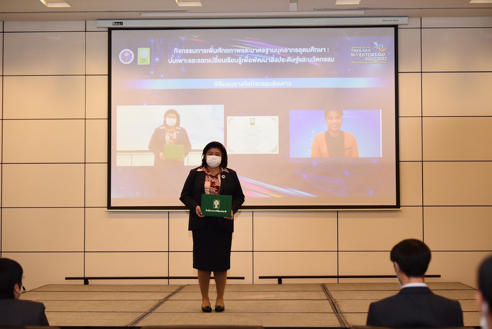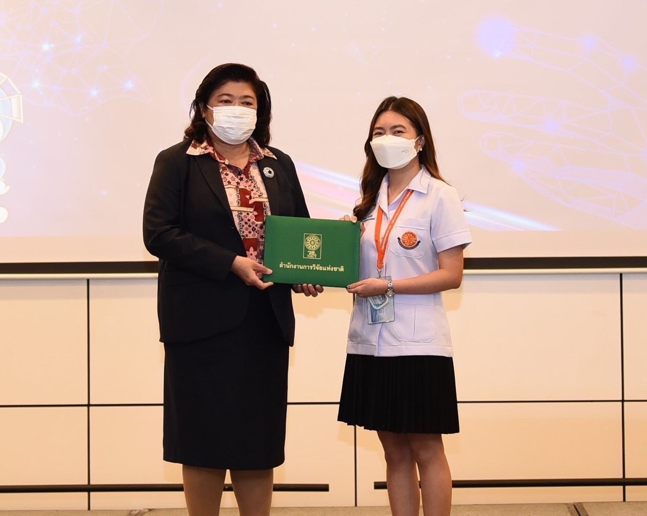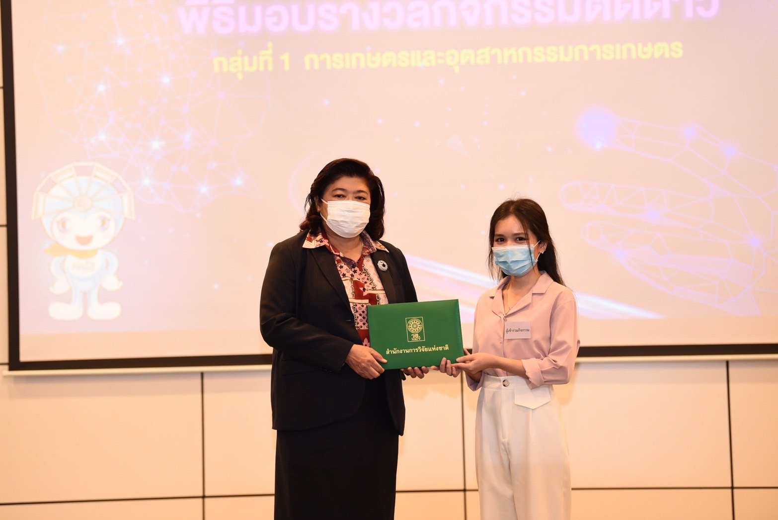 ผู้อำนวยการสำนักงานการวิจัยแห่งชาติ มอบรางวัลกิจกรรมติดดาว แก่นักศึกษา ระดับอุดมศึกษา ที่เข้าร่วมกิจกรรมการเพิ่มศักยภาพและมาตรฐานบุคลากรอุดมศึกษา : บ่มเพาะและแลกเปลี่ยนเรียนรู้ เพื่อพัฒนาสิ่งประดิษฐ์และนวัตกรรม ในงานวันนักประดิษฐ์ ประจำปี 2564 -2565 หลังเข้าอบรมเสริมสร้างความรู้ และแรงบันดาลใจจากวิทยากรผู้เชี่ยวชาญ กว่า 3 วัน โดยมุ่งหวังให้สามารถนำความรู้ไปใช้พัฒนาประเทศได้ต่อไป
