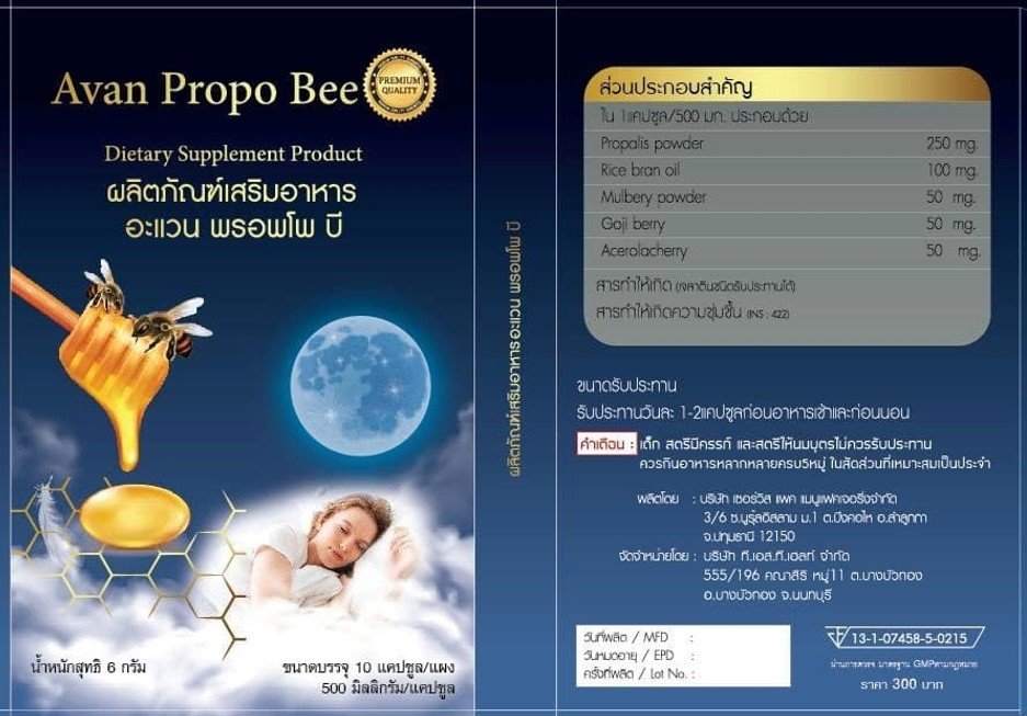 ปัจจุบัน “Avan propo Bee” ผลิตภัณฑ์เพื่อสุขภาพเติมเต็มสุนทรียภาพแห่งการนอนหลับ ได้จดทะเบียนอาหารและยา กับสำนักงานคณะกรรมการอาหารและยา (อย.) กระทรวงสาธารณสุข อย่างถูกต้องในปี พ.ศ. 2563 แล้ว และตอนนี้ได้มีการจำหน่ายให้กับประชาชนผู้สนใจเป็นที่เรียบร้อยแล้ว