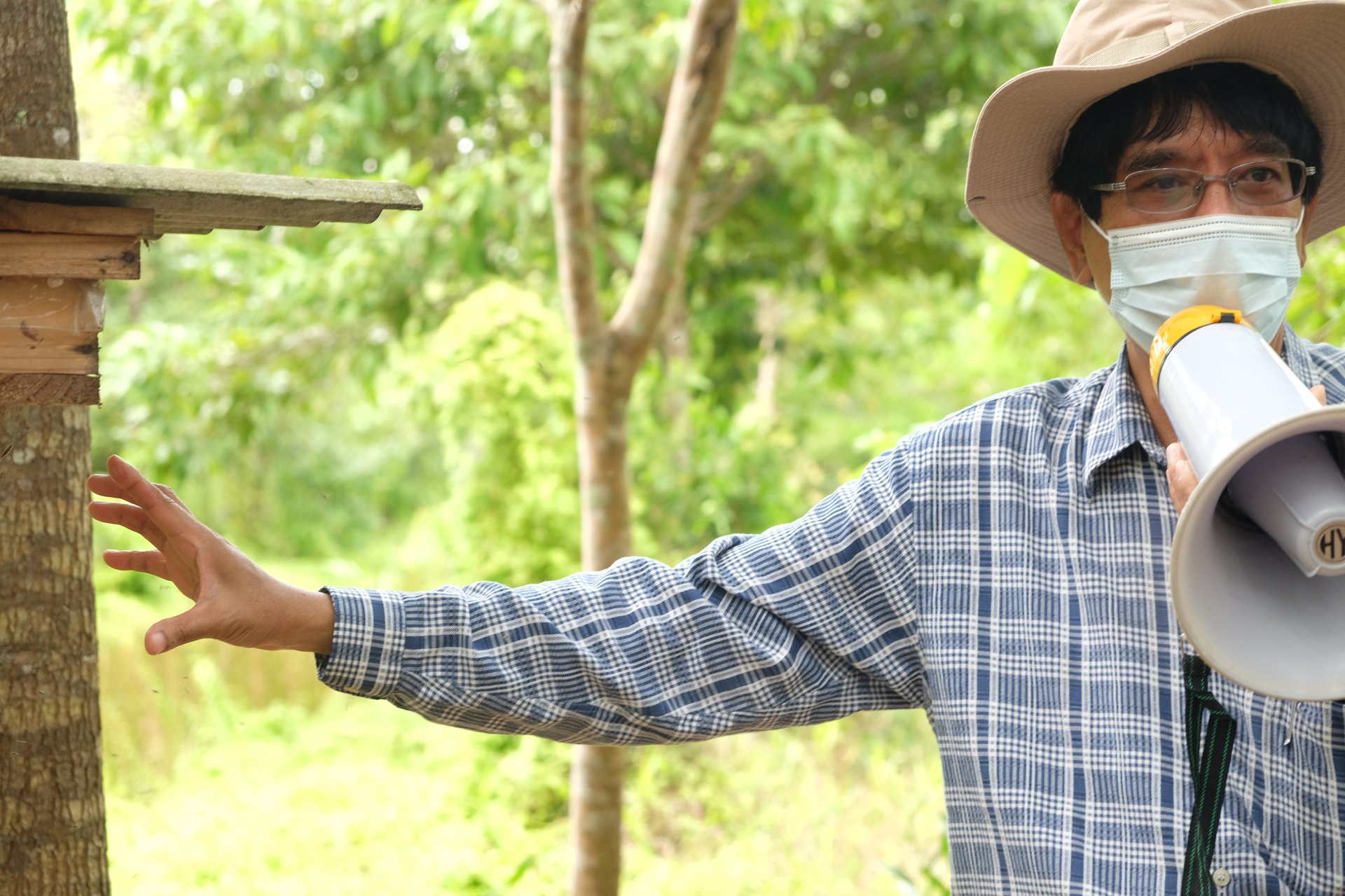 จากนั้นจึงไปเยี่ยมชมผู้เลี้ยงผึ้งชันโรงพื้นที่เลี้ยงโรงเก็บน้ำประปาหมู่บ้านชะแล้ นายวินัยอินทานุกูลเล่าว่า “ผึ้งชันโรงจะบินออกหากินระยะประมาณ 300 เมตรระยะ เดินทางออกหากินวันละประมาณ 10กว่าเที่ยว ถ้าเรามีแหล่งอาหารให้เพียงพอจะทำให้เที่ยวบินถี่จะได้น้ำผึ้งเยอะขึ้น ความสมบูรณ์ของแหล่งอาหารไม่ว่าจะเป็นเกษรดอกไม้ น้ำล้วนเป็นปัจจัยสำคัญที่ทำให้สำคัญน้ำผึ้งชันโรงของชะแล้มีคุณค่าและมีประโยชน์มาก”
