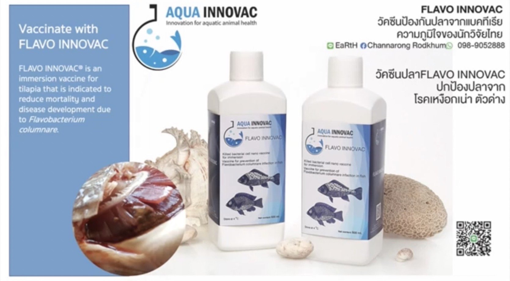 จากปัญหาดังกล่าวทางคณะผู้วิจัยจึงได้มีแนวคิดที่จะพัฒนาวัคซีนป้องกันโรคนี้ให้ปลา โดยวัคซีนจะพัฒนามาจากเชื้อแบคทีเรียที่แยกได้จากท้องถิ่นในประเทศไทยเอง นำเชื้อมาทำให้ตายและกลายเป็นอนุภาคนาโน แต่ทว่ายังสามารถเกาะติดเยื่อเมือกของปลาเพื่อกระตุ้นให้ปลาสร้างภูมิคุ้มกันเฉพาะขึ้นเพื่อต้านทานการก่อโรคของเชื้อแบคทีเรียนี้ได้เป็นอย่างดีเนื่องจากมีการเคลือบอีกชั้นด้วยอนุภาคนาโนที่สกัดจากสารธรรมชาติ เช่น ไขมัน และเพอลิเมอร์จากธรรมชาติ ซึ่งอนุภาคนาโนเหล่านี้จะเป็นตัวห่อหุ้มแบททีเรียที่ตายแล้ว อนุภาคของวัคซีนมีคุณสมบัติเข้าเกาะติดเยื่อเมือกเลียนแบบการก่อโรคของเชื้อแบคทีเรีย ฟลาโวแบคทีเรียม คอลัมแนร์ นั้น เมื่อนำปลาไปแช่วัคซีน วัคซีนก็จะเกาะติดที่เยื่อเมือกของปลา และดูดซึมผ่านเยื่อเมือกได้ การทำวัคซีนชนิดนี้มีข้อดีคือเป็นวัคซีนแบบไร้เข็ม (needle-free vaccination) ที่ใช้ได้กับปลาทุกขนาดตั้งแต่ขนาดเล็กมาก ๆ ใช้เพียงการจุ่มแช่ตัวปลาในระยะเวลาสั้น ๆ ประมาณ 30 นาที แล้วปล่อยปลาลงไปในน้ำที่ใช้เลี้ยงปรกติ หลังจากนั้นปลาจะค่อย ๆ สร้างภูมิคุ้มกันที่เฉพาะเจาะจงต่อการติดเชื้อแบคทีเรียฟลาโวแบคทีเรียม คอลัมแนร์ขึ้นได้นานประมาณ 2-3 เดือน และมีอัตราการรอดชีวิตสูงมากกว่าร้อยละ 60 เมื่อมีการติดเชื้อดังกล่าว ดังนั้นวัคซีนนี้จึงเป็นวัคซีนที่ลดข้อเสีย ข้อจำกัด หรือความไม่สะดวกต่าง ๆ ที่เกิดจากการที่ต้องทำวัคซีนแบบฉีดแบบเดิม ๆ ให้แก่ปลาลงได้ อาทิเช่น วัคซีนแบบฉีดทำได้เมื่อปลามีขนาดใหญ่พอสมควรเท่านั้น ก่อนฉีดวัคซีนต้องมีการวางยาสลบให้ปลาก่อน ต้องใช้ผู้ที่มีความชำนาญในการฉีดวัคซีน ขั้นตอนในการฉีดและอุปกรณ์ต่าง ๆ มีความยุ่งยาก และปลาอาจเกิดการติดเชื้อหรือบาดเจ็บจากบริเวณที่ฉีดวัคซีนได้