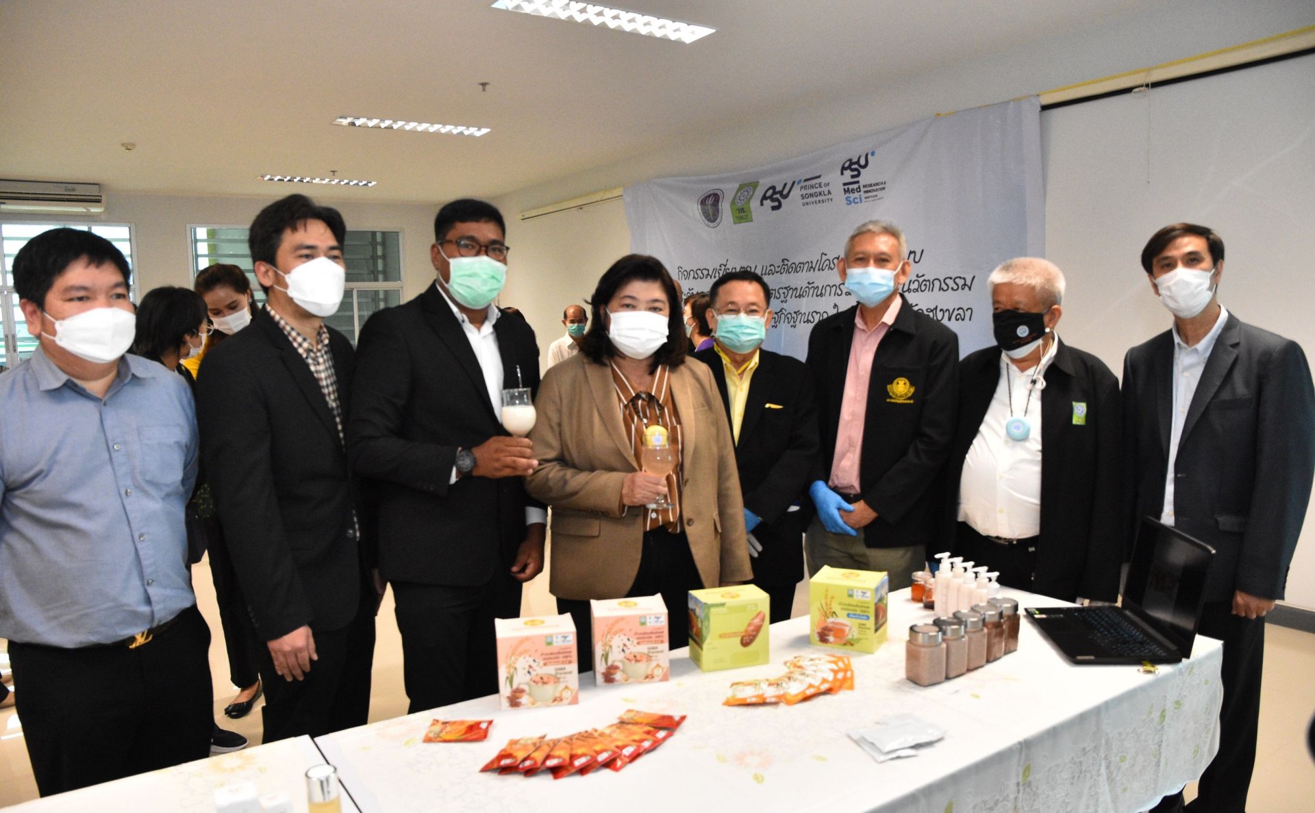 ฟังก์ชันนอลชนิดผงสำเร็จรูปจากสารสกัดข้าวกล้องสังข์หยดอินทรีย์สำหรับผู้สูงวัยและวัยทำงาน ส่งเสริมรายได้พื้นที่เป้าหมาย สร้างเกษตรกรต้นแบบในพื้นที่จังหวัดพัทลุงและส่งเสริมวิสาหกิจชุมชนชาวนาพัทลุงและสมาคมผู้ปลูกและค้าข้าวสังข์หยดพัทลุง ยกระดับคุณภาพชีวิตและสิ่งแวดล้อมให้ดีขึ้น ข้าวกล้องสังข์หยดอินทรีย์ โดยการนำองค์ความรู้ ผลงานวิจัยและนวัตกรรม สู่กระบวนการผลิตที่ผ่านมาตรฐานอินทรีย์และ GI ในรูปแบบของ เครื่องดื่มฟังก์ชันนอลชนิดผงสำเร็จรูปจากสารสกัดข้าวกล้องสังข์หยดอินทรีย์สำหรับผู้สูงวัย และวัยทำงาน และพัฒนาเป็นเครื่องดื่มฟังก์ชันนอล 2 สูตร คือ “สูตรเสริมถั่ว5 สี” มีส่วนช่วยในการบำรุงร่างกาย มีสารต้านอนุมูลอิสระ และโปรตีนสูงเสริมสร้างความแข็งแรงให้แก่กล้ามเนื้อหัวใจ และ “สูตรเสริมโพรไบโอติก” ที่มีส่วนช่วยในการขับถ่ายที่ปลอดภัยเหมาะกับกลุ่มผู้สูงอายุและวัยทำงานผลผลิตจากโครงการการพัฒนาผลิตภัณฑ์เครื่องดื่มฟังก์ชัน จากข้าวกล้องสังข์หยดอินทรีย์หักท่อน “เพื่อสุขภาพ” ด้วยองค์ประกอบทางเคมีของข้าวสังข์หยดพัทลุง ที่มีคุณค่าทางโภชนาการที่สูงมากเมื่อเทียบกับข้าวทั่วไป อุดมไปด้วยสารต้านอนุมูลอิสระที่มีกลไกที่ช่วยป้องกันและยับยั้งการเกิดโรคจากความเสื่อมของเซลล์ ช่วยชะลอความชราและลดความเสี่ยงในการเป็นโรคต่าง ๆ ที่มักพบในผู้สูงวัย สาร Gamma Amino Butyric Acid (GABA) ช่วยบำรุงระบบประสาทและสมอง ช่วยลดโอกาสในการเป็นมะเร็งได้เป็นอย่างดี มี ธาตุเหล็ก ธาตุฟอสฟอรัสสูง ซึ่งมีประโยชน์ในการบำรุงโลหิต บำรุงร่างกายให้แข็งแรง ช่วยเสริมสร้างส่วนที่สึกหรอ เสริมความแข็งแรงของกระดูกและฟัน และปริมาณไนอาซินที่สูงมาก ช่วยในการป้องกันสภาวะการผิดปกติทางระบบประสาทและความจำเสื่อม โครงการการพัฒนาผลิตภัณฑ์เครื่องดื่มฟังก์ชัน จะช่วยก่อให้เกิดการ “ยกระดับมาตรฐานการครองชีพและความเป็นอยู่ของเกษตรกรผู้ปลูกข้าวสังข์หยดอินทรีย์พัทลุงในชุมชนให้ดีขึ้น” นำไปสู่การแก้ไขปัญหาความยากจนความเหลื่อมล้ำ และความไม่เสมอภาคของสังคมไทย ยกระดับเศรษฐกิจฐานราก ให้เกษตรกรไทยมีรายได้และคุณภาพชีวิตที่ดีได้อย่างยั่งยืน