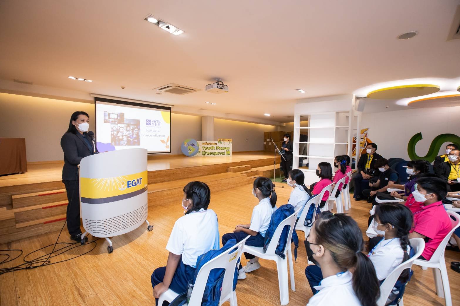วันนี้ (25 พฤษภาคม 2565) นายชัยวุฒิ หลักเมือง ผู้อำนวยการฝ่ายบริหารด้านการใช้ไฟฟ้าและกิจการเพื่อสังคม การไฟฟ้าฝ่ายผลิตแห่งประเทศไทย (กฟผ.) และ ดร.พีระนุช กัณหดิลก ผู้อำนวยการศูนย์พัฒนาความตระหนักด้านวิทยาศาสตร์แห่งชาติ องค์การพิพิธภัณฑ์วิทยาศาสตร์แห่งชาติ (อพวช.) ร่วมเปิดกิจกรรม Junior Influencer for Youth Power @Bang Kruai เพื่อส่งเสริมศักยภาพและพัฒนาทักษะการผลิตสื่อของเยาวชนสู่การเป็นอินฟลูเอนเซอร์ด้านพลังงาน ณ ศูนย์การเรียนรู้ กฟผ. สำนักงานกลาง อ.บางกรวย จ.นนทบุรี