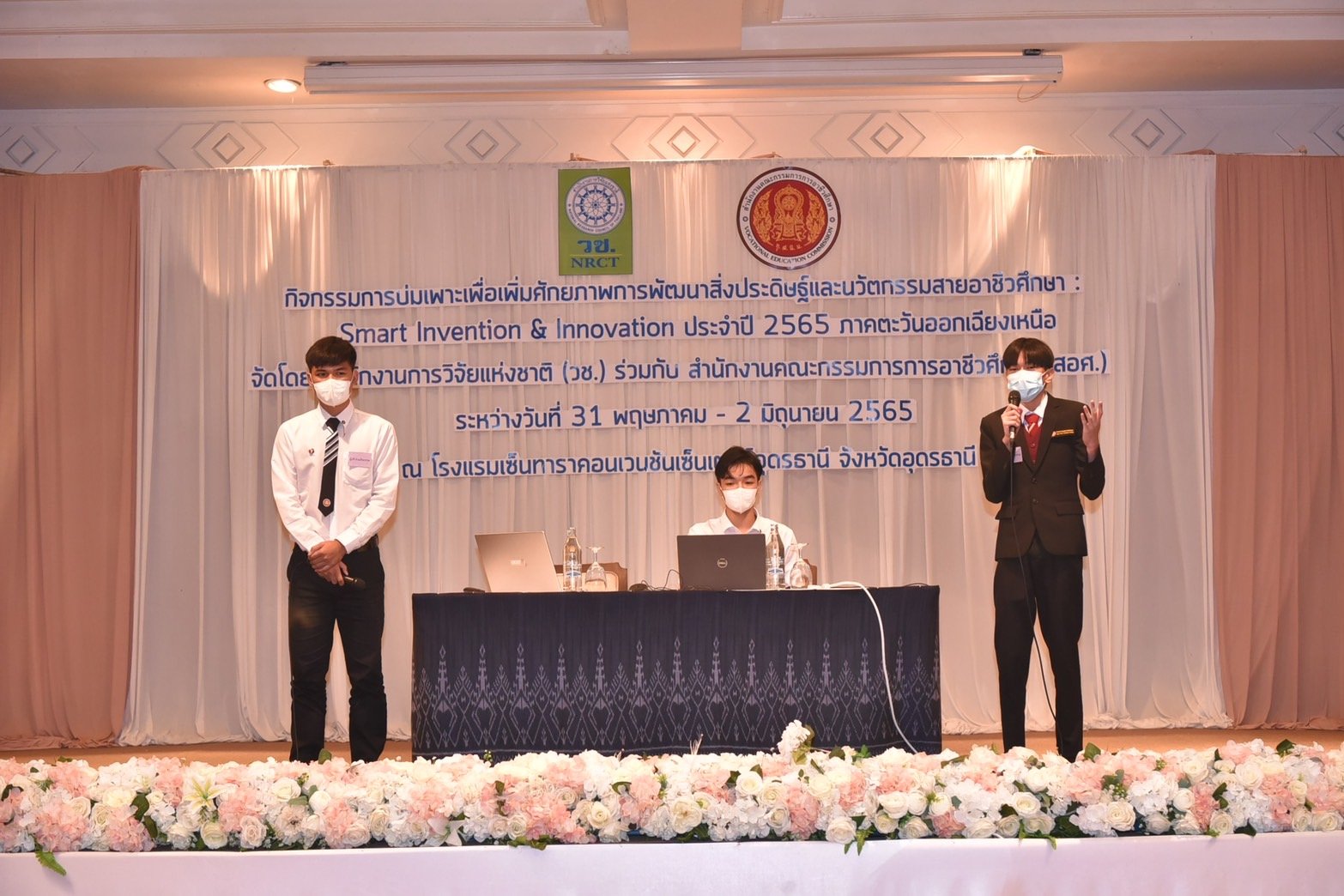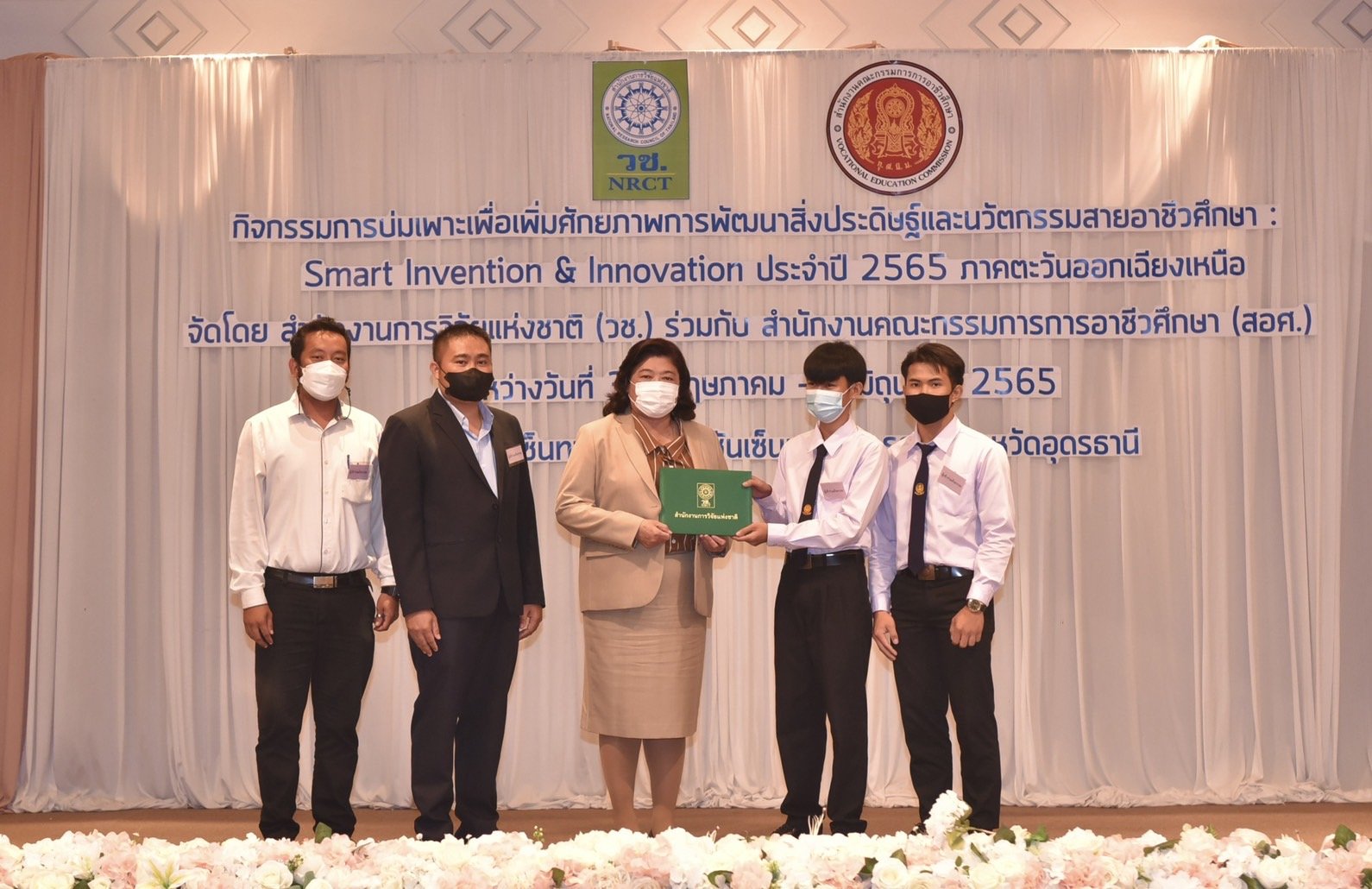 วช. ร่วมกับ สอศ. จัดกิจกรรม “การบ่มเพาะเพิ่มศักยภาพการพัฒนาสิ่งประดิษฐ์และนวัตกรรมสายอาชีวศึกษา : Smart Invention & Innovation ภาคตะวันออกเฉียงเหนือ” ระหว่างวันที่ 31 พฤษภาคม – 2 มิถุนายน 2565 ณ โรงแรมเซ็นทาราคอนเวนชันเซ็นเตอร์อุดรธานี จังหวัดอุดรธานี เพื่อส่งเสริมและสนับสนุนการพัฒนาศักยภาพของนักเรียน นักศึกษาสายอาชีวศึกษา เพื่อเตรียมความพร้อมให้มีการนำเทคโนโลยีมาใช้ในการพัฒนาประเทศในด้านต่าง ๆ
