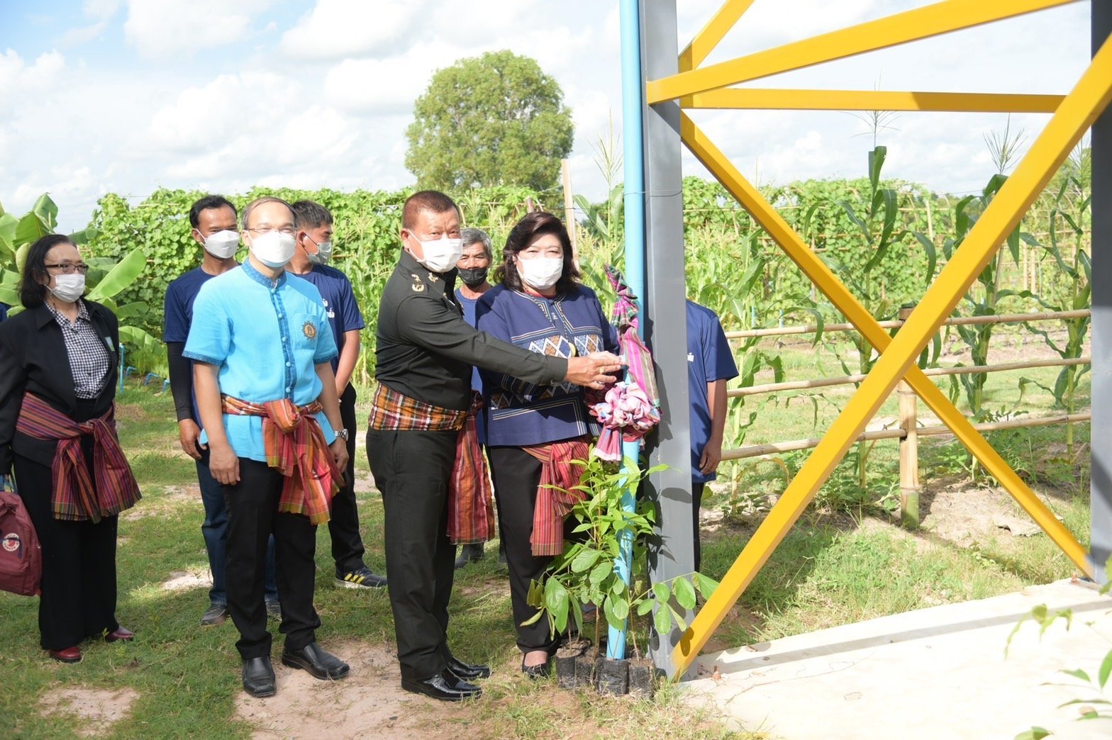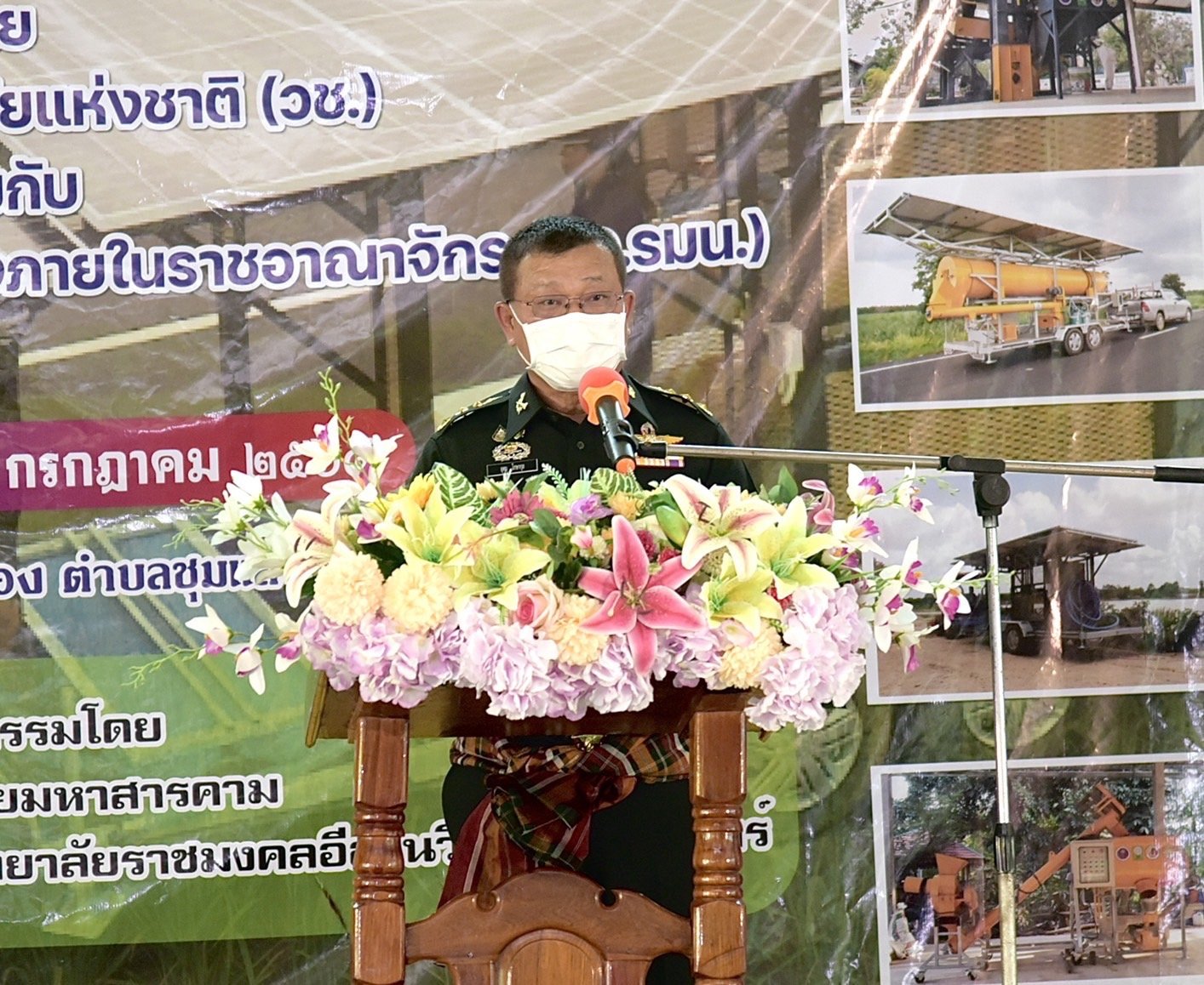พลโท อุดม โกษากุล ผู้อำนวยการศูนย์ประสานการปฏิบัติที่ 1 กอ.รมน. กล่าวว่า กอ.รมน. ได้ร่วมมือกับ วช. ในการสนับสนุนองค์ความรู้ เทคโนโลยี และนวัตกรรมเพื่อการบริหารจัดการภัยแล้งให้กับพื้นที่เป้าหมายจังหวัดบุรีรัมย์ โดยศูนย์ประสานการปฏิบัติที่ 1 กอ.รมน. ได้คัดเลือกพื้นที่บ้านตามา บ้านสุขวัฒนา และ บ้านสุขสำราญ ตำบลชุมแสง อำเภอสตึก จังหวัดบุรีรัมย์ ซึ่งเป็นโครงการวิจัยของ ศาสตราจารย์ ดร.อนงค์ฤทธิ์ แข็งแรง รองอธิการบดีฝ่ายพัฒนาโครงสร้างพื้นฐาน วิจัยและนวัตกรรม เป็นหัวหน้าโครงการฯ ได้ร่วมกับคณะนักวิจัยจาก 3 มหาวิทยาลัย ได้แก่ มหาวิทยาลัยมหาสารคาม มหาวิทยาลัยราชภัฏสุรินทร์ และมหาวิทยาลัยเทคโนโลยีราชมงคลอีสาน วิทยาเขตสุรินทร์ ที่มีความเชี่ยวชาญในแต่ละด้าน เพื่อดำเนินโครงการการบริหารจัดการภัยแล้งพื้นที่เกษตรกรรมในจังหวัดบุรีรัมย์ ซึ่งศูนย์ประสานการปฏิบัติที่ 1 กอ.รมน. ได้ติดตามการดำเนินงานมาโดยตลอด และด้วยความตั้งใจของหัวหน้าโครงการฯ ตลอดจนการสนับสนุนของส่วนราชการต่าง ๆ ในจังหวัดบุรีรัมย์ โดยกลไกบูรณาการเชิงพื้นที่ร่วมกับหน่วยงานพัฒนา หน่วยงานภาคปฏิบัติในพื้นที่ และหน่วยงานที่ร่วมสนับสนุนผลผลิตการวิจัย เพื่อให้เกิดการพัฒนาอย่างยั่งยืน
