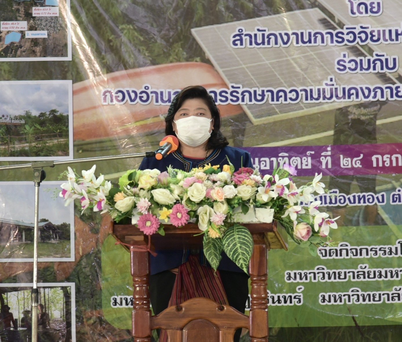 ศาสตราจารย์ ดร.อนงค์ฤทธิ์ แข็งแรง รองอธิการบดีฝ่ายพัฒนาโครงสร้างพื้นฐาน วิจัยและนวัตกรรม มหาวิทยาลัยมหาสารคาม หัวหน้าโครงการฯ กล่าวว่า กอ.รมน. และ วช. ได้คัดเลือกพื้นที่ในจังหวัดบุรีรัมย์เป็นพื้นที่เป้าหมายในการทำโครงการการใช้ประโยชน์ผลงานวิจัยและนวัตกรรมเพื่อชุมชนสังคม ภายใต้แผนงานทุนท้าทายไทยด้านภัยแล้ง กลุ่มเรื่องภัยแล้ง ประจำปี 2564 โดยมอบหมายให้ คณะผู้ดำเนินโครงการจาก มหาวิทยาลัยมหาสารคาม มหาวิทยาลัยราชภัฎสุรินทร์ และ มหาวิทยาลัยเทคโนโลยีราชมงคลอีสาน วิทยาเขตสุรินทร์ ดำเนินโครงการในพื้นที่ 3 หมู่บ้านในเขตตำบลชุมแสง อำเภอสตึก จังหวัดบุรีรัมย์ ได้แก่ บ้านตามา บ้านสุขสำราญ บ้านสุขวัฒนา ซึ่งเป็นพื้นที่ประสบปัญหาภัยแล้งทุกปี ทำให้เป็นอุปสรรคในการทำเกษตรกรรมของเกษตรกร จากปัญหาภัยแล้งดังกล่าว ทำให้เกษตรกรในพื้นที่มีความต้องการนวัตกรรมที่เหมาะสมเพื่อแก้ไขปัญหาและพัฒนารูปแบบการทำเกษตรให้ตรงกับบริบทของชุมชนให้เกิดประโยชน์ตามหลักปรัชญาของเศรษฐกิจพอเพียงได้ ทั้งด้านการบริหารจัดการน้ำเพื่อการเกษตร การจัดการผลผลิตทางการเกษตร การทำการเกษตรนอกฤดูกาลเพาะปลูก และการต่อยอดการใช้พื้นที่สาธารณประโยชน์ร่วมกันให้เกิดประโยชน์สูงสุด กิจกรรมในวันนี้ ภาคประชาชนในพื้นที่จะได้นำผลงานวิจัยและนวัตกรรมที่ส่งมอบให้ไปใช้ในการประกอบอาชีพของกลุ่ม รวมถึงช่วยเผยแพร่องค์ความรู้ให้แก่เกษตรกรในพื้นที่จังหวัดบุรีรัมย์ให้เป็นที่รู้จักและได้มาใช้ประโยชน์จากนวัตกรรมจากการวิจัยร่วมกันต่อไป