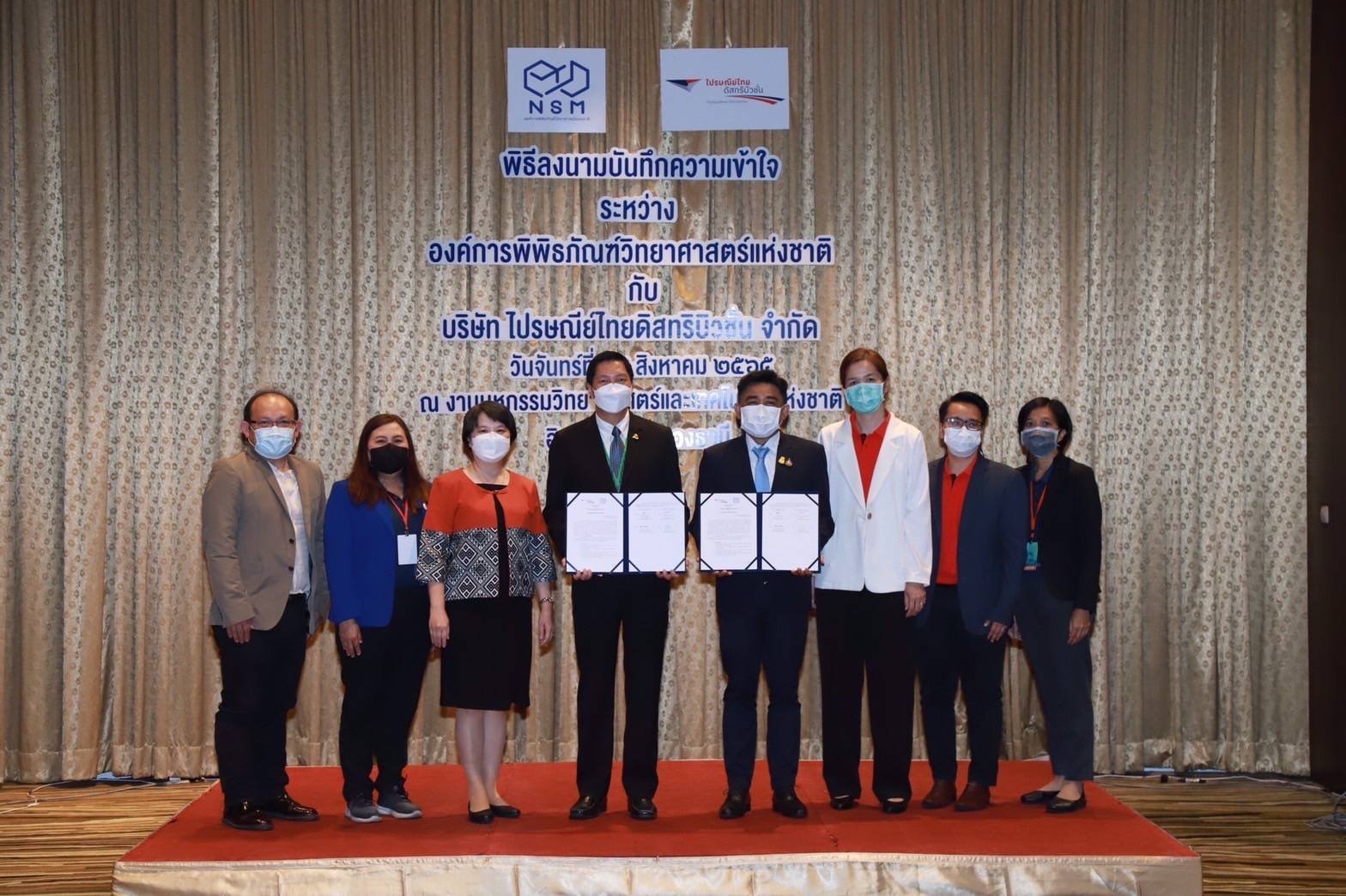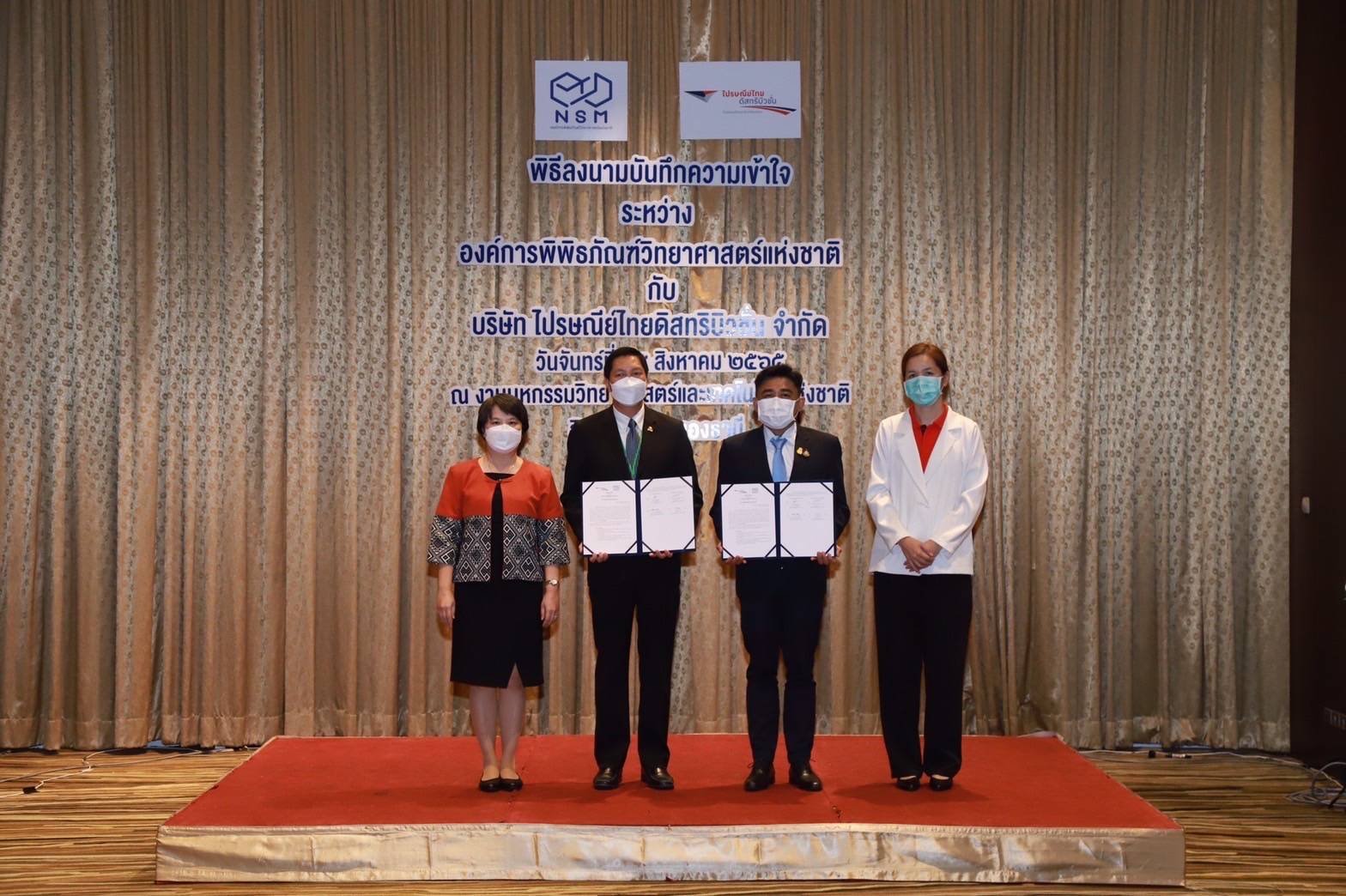 ผศ.ดร.รวิน ระวิวงศ์ ผู้อำนวยการองค์การพิพิธภัณฑ์วิทยาศาสตร์แห่งชาติ ร่วมลงนามความร่วมมือ กับ นายพีระ อุดมกิจสกุล กรรมการผู้จัดการบริษัท ไปรณีย์ไทยดิสทริบิวชั่น จำกัด โดยมี ดร.กรรณิการ์ เฉิน รองผู้อำนวยการองค์การพิพิธภัณฑ์วิทยาศาสตร์แห่งชาติ และนางผกาวรรณ เจริญปรุ ผู้จัดการฝ่ายการตลาดและการขาย บริษัท ไปรษณีย์ไทยดิสทริบิวชั่น จำกัด ร่วมเป็นสักขีพยาน ณ ห้องฟีนิกซ์ 5 ศูนย์แสดงสินค้าและการประชุมอิมแพ็ค เมืองทองธานี