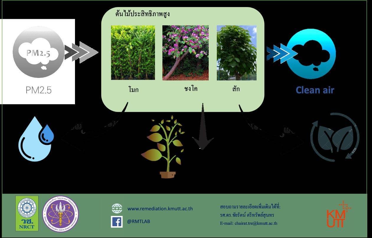 มลพิษในอากาศทุกวันนี้ยังเป็นปัญหาสำคัญที่ส่งผลกระทบต่อ ปัญหาด้านสุขภาพ โดยเฉพาะโรคที่เกี่ยวเนื่องมาจากระบบทางเดินหายใจ ไม่ว่าจะเป็นโรคปอด ภูมิแพ้ และหอบหืด รวมทั้งสารระเหยหลายชนิดยังถูกจัดให้อยู่ในกลุ่มสารก่อมะเร็ง มีงานวิจัยและนวัตกรรมหลายชิ้นงาน ที่เข้ามาช่วยป้องกันและแก้ปัญหาฝุ่นละอองเหล่านี้ รวมไปถึงงานวิจัยการใช้พืชยืนต้นเพื่อบำบัดฝุ่นละอองในอากาศอย่างยั่งยืน ที่ดำเนินการโดยทีมวิจัยจากมหาวิทยาลัยเทคโนโลยีพระจอมเกล้าธนบุรี ( มจธ. ) ร่วมกับมหาวิทยาลัยศรีนครินทรวิโรฒ จากการสนับสนุนงบประมาณในการวิจัยโดยสำนักงานการวิจัยแห่งชาติ ( วช. ) และได้นำมาจัดแสดงในมหกรรมงานวิจัยแห่งชาติ 2565 ระหว่างวันที่ 1-5 สิงหาคมที่ผ่านมา