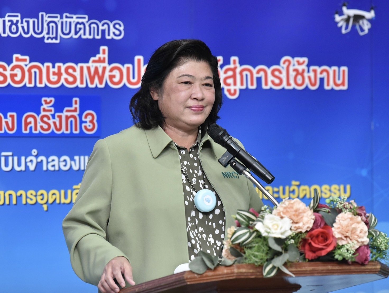 ดร.วิภารัตน์ ดีอ่อง ผู้อำนวยการสำนักงานการวิจัยแห่งชาติ กล่าวว่า วช. ภายใต้กระทรวง อว. ตระหนักถึงความสำคัญในการพัฒนาเทคโนโลยีในโลกอนาคต โดยเฉพาะการส่งเสริมนักเรียน นักศึกษาในระดับมัธยมศึกษาและอุดมศึกษา ซึ่งปัจจุบันมีการนำเทคโนโลยีโดรนมาใช้งานในด้านต่าง ๆ มากขึ้น ด้วยคุณสมบัติโดดเด่นที่ถูกพัฒนาให้มีความทันสมัยของโดรนในการผสานการทำงานร่วมกับระบบ AI และ Machine Learning นำไปสู่การพัฒนาเทคโนโลยีอากาศยานไร้คนขับ ทำให้โดรนสามารถทำงานแทนมนุษย์ได้ และสามารถรองรับการใช้งานในภารกิจที่หลากหลายได้อย่างมีประสิทธิภาพ ดังนั้น วช.จึงได้ให้การสนับสนุนสมาคมกีฬาเครื่องบินจำลองและวิทยุบังคับ ในการจัดโครงการ “อบรมเชิงปฏิบัติการการถ่ายทอดเทคโนโลยีโดรนแปรอักษรเพื่อประยุกต์สู่การใช้งาน” เพื่อถ่ายทอดองค์ความรู้เทคโนโลยีที่ทันสมัย ตลอดจนส่งเสริมสนับสนุนและพัฒนาองค์ความรู้ด้วยการผสมผสานเทคโนโลยีอากาศยานไร้คนขับ หรือ โดรน มาปรับใช้กับการทำงานในงานด้านต่าง ๆ พัฒนาด้านการศึกษาให้เกิดการสร้างนวัตกรรม สิ่งประดิษฐ์ใหม่ ๆ สร้างนวัตกรในประเทศ ให้มีความรู้ความชำนาญและมีประสบการณ์ในด้านนี้เพิ่มมากขึ้น เกิดการพัฒนาความก้าวหน้าทางเทคโนโลยีอย่างต่อเนื่อง รองรับการขยายตัวของเทคโนโลยี ด้านการบินในอนาคต อันจะเป็นประโยชน์ต่อการพัฒนาประเทศต่อไป