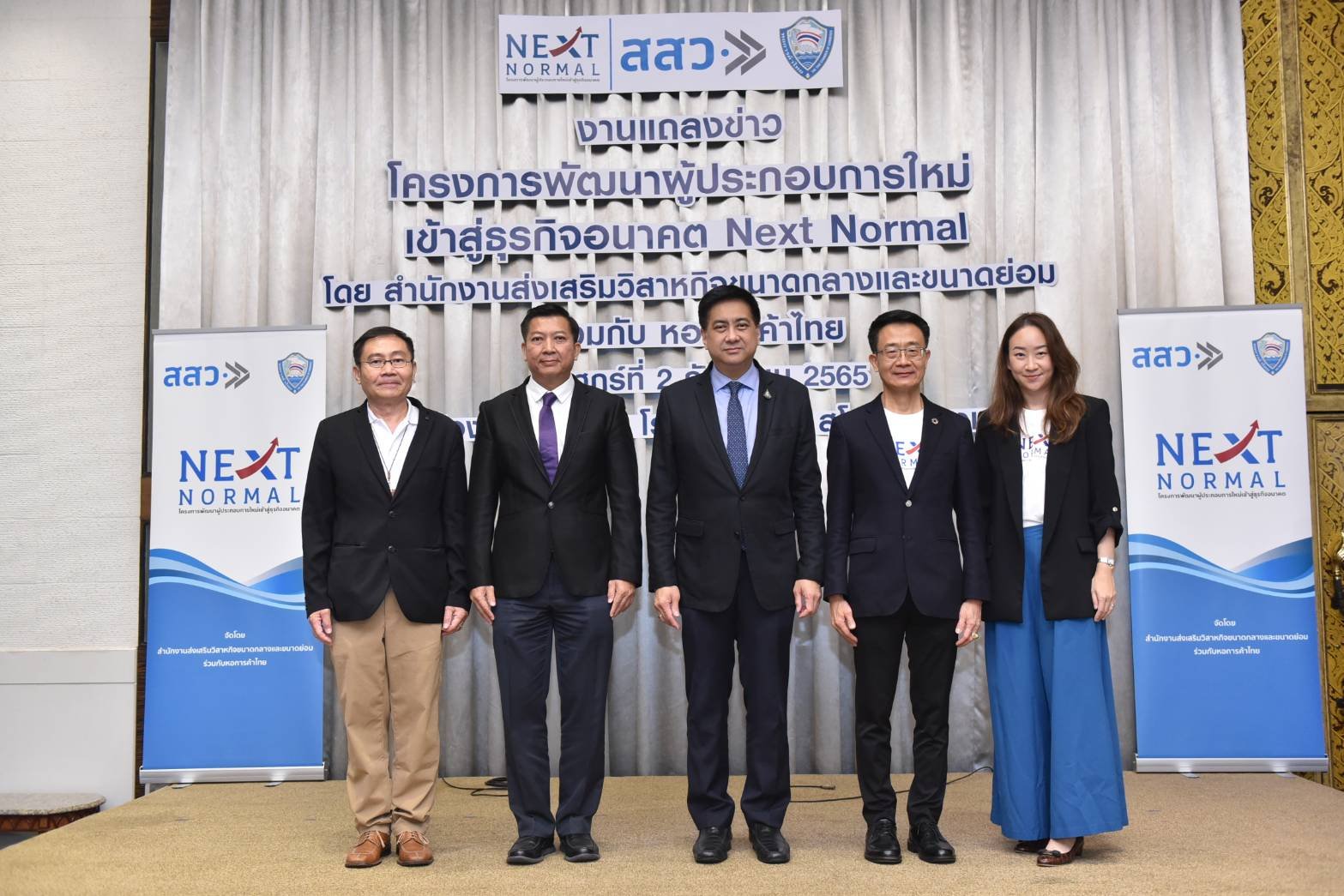 "สสว. ได้ร่วมมือกับหอการค้าไทย จัดทำโครงการพัฒนาผู้ประกอบการใหม่เข้าสู่ธุรกิจอนาคต Next Normalปี 2565 เพื่อมุ่งพัฒนาและยกระดับธุรกิจด้วยเทคโนโลยีและนวัตกรรม เพื่อผลักดันสินค้าและบริการเข้าสู่ธุรกิจอนาคตอย่างยั่งยืน ท่ามกลางการเปลี่ยนแปลงในการแข่งขันทางธุรกิจ รวมทั้งวิถีชีวิตยุคใหม่ (Next Normal) ที่ทำพฤติกรรมการบริโภคสินค้าและบริการมีการเปลี่ยนแปลงไปอย่างรวดเร็ว"