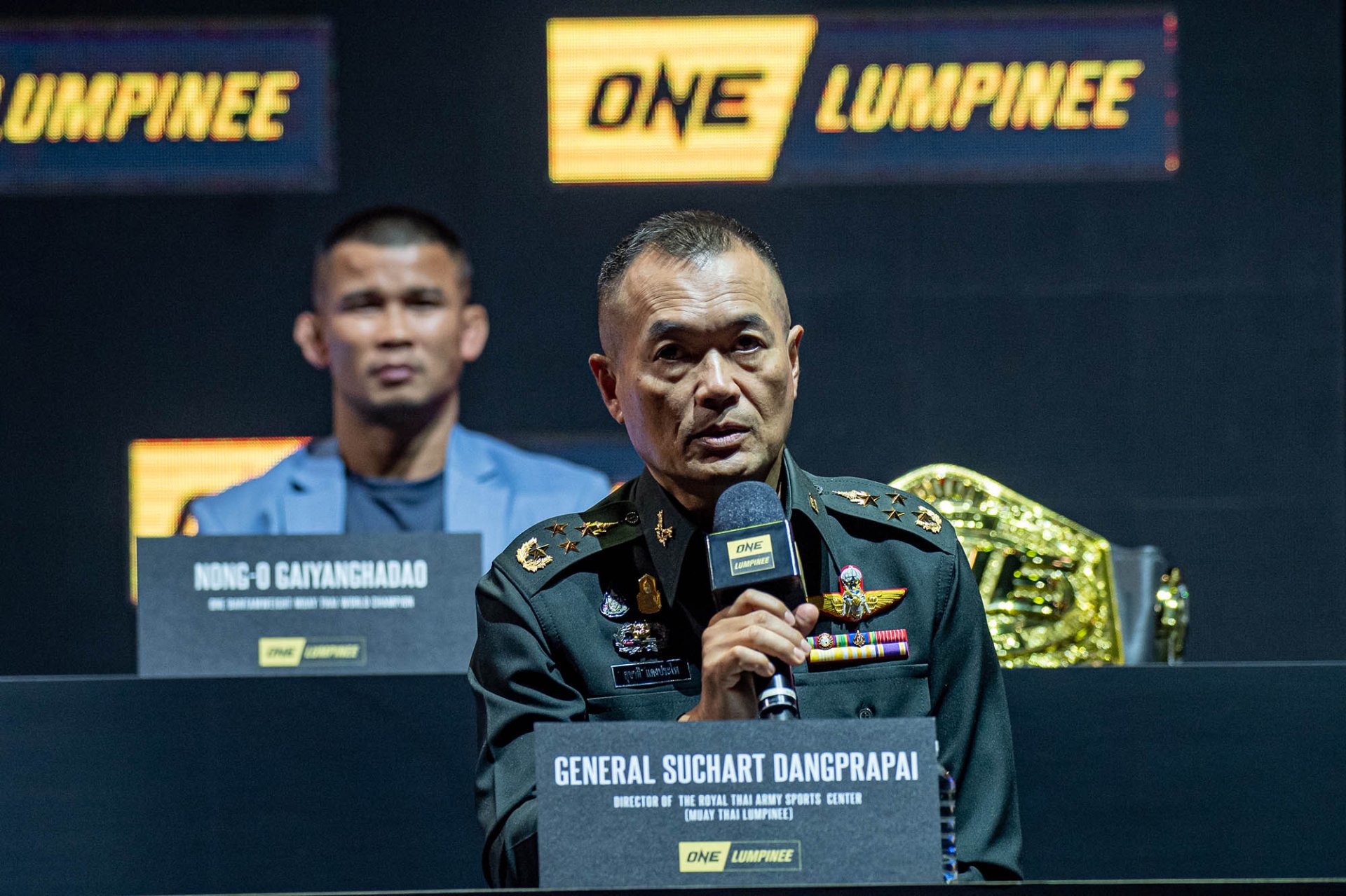 ด้าน พล.อ.สุชาติ แดงประไพ กล่าวว่า “ทางกองทัพบกมีความตั้งใจอย่างมากที่จะยกระดับมวยไทยให้เป็นกีฬาอย่างแท้จริง เราหวังที่จะเห็นมวยไทยซึ่งไม่มีการพนันเข้ามาเกี่ยวข้อง เพื่อที่จะผลักดันมวยไทยให้เป็นซอฟท์พาวเวอร์สู่ระดับโลก เราจึงมองหาโปรโมเตอร์ที่จะช่วยสร้างความสำเร็จนี้ให้เกิดขึ้นได้จริง จึงได้เชิญ ONE ซึ่งเป็นผู้จัดการแข่งขันศิลปะการต่อสู้ระดับโลกมาเป็นโปรโมเตอร์จัดศึก ONE LUMPINEE ในครั้งนี้”