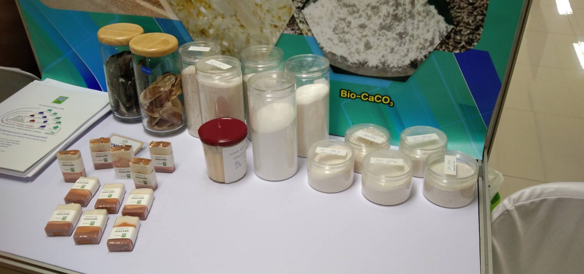 ซึ่งคณะนักวิจัยได้นำต้นแบบผลิตภัณฑ์ฯ มาจัดแสดงในงานวันคล้ายวันสถาปนา วช. ครบรอบ 63 ปี ที่ผ่านมาอาทิ สบู่ขัดผิวผสมผงประกายมุก ซึ่งเป็นการแปรรูปเปลือกหอยแมลงภู่ให้เป็นแคลเซียมคาร์บอเนตบริสุทธิ์ มีคุณภาพสูง สามารถกระจายตัวได้ดีในวัตถุดิบสำหรับทำสบู่ ทำให้เกิดฟองขนาดเล็ก ทำความสะอาดผิวได้ดียิ่งขึ้น โลชั่นบำรุงผิวผสมผงมุก ที่เพิ่มความขาวกระจ่างใสให้ผิว โดยไม่ทำให้ผิวระคายเคืองเนื่องจากเป็นวัสดุจากธรรมชาติ มีคุณสมบัติสะท้อนรังสี UVB ได้ดี และผลิตภัณฑ์ทรายอะราโกไนต์จากเปลือกหอยแมลงภู่ สำหรับตู้ปลาสวยงาม ที่สามารถนำมาใช้ทดแทนปะการัง ช่วยปรับสภาพน้ำให้มีความเหมาะสมกับการเลี้ยงปลาทะเลสวยงามอีกด้วย