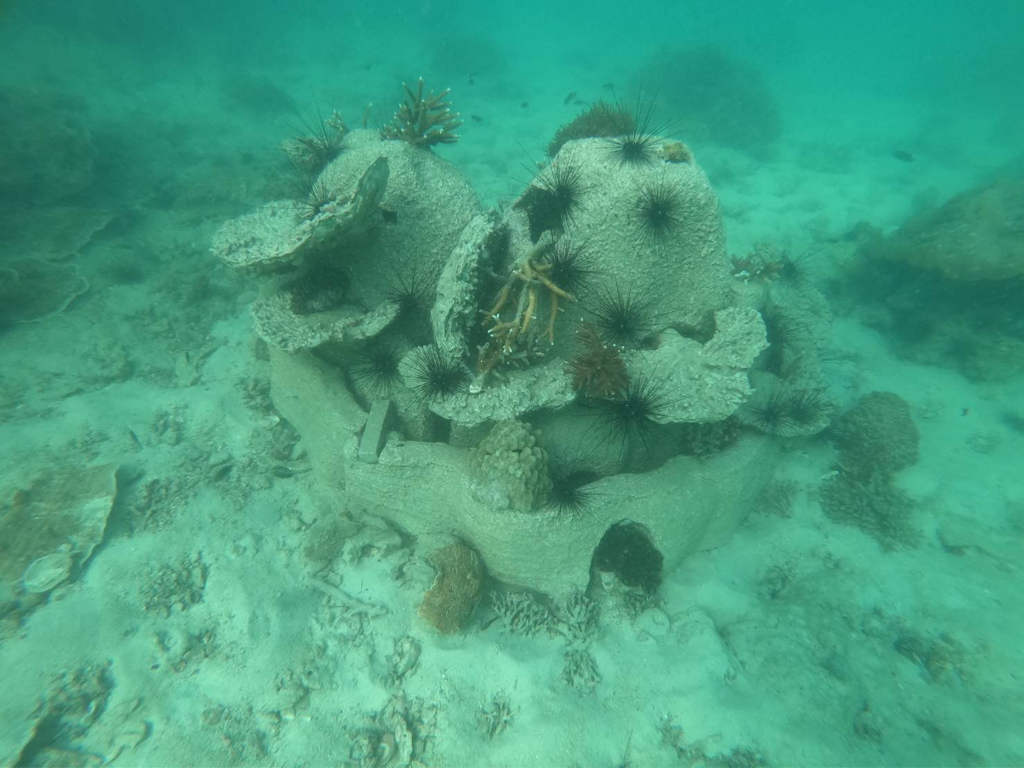 เริ่มตั้งแต่ศึกษาจากปะการังธรรมชาติ ว่ามีฟังชั่นอย่างไร จนมาลงตัวที่ปะการังเขากวาง เพราะมีลักษณะการเรียงตัวเป็นธรรมชาติ มีความสามารถในการชะลอกระแสน้ำ พร้อมทั้งนำตัวอ่อนของปะการังตามธรรมชาติให้เกาะได้ทนนานขึ้นกว่าการวางไว้เฉย ๆ ให้น้ำพัดผ่านไป แต่ก็ยังพบปัญหาเพราะการที่เอาปะการังเทียมไปวางเป็นปูนมีน้ำหนักมาก เวลานำไปวางต้องใช้เครนในการยกไปติดตั้ง จึงปรับให้มีขนาดเล็กลงโดยทำเป็นก้อนเล็ก ๆ 3 ก้อน โดยเจาะรูใส่กิ่งปะการังเข้าไปทำให้ขั้นตอนในการติดตั้งในใต้น้ำทำได้รวดเร็วและมีประสิทธิภาพมากขึ้น