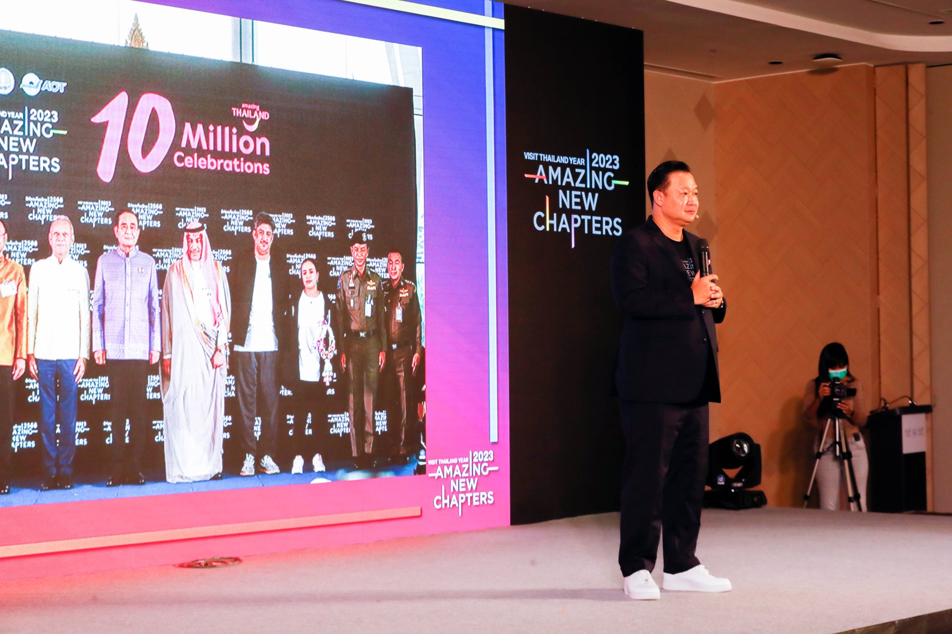 นายยุทธศักดิ์ สุภสร ผู้ว่าการ ททท. กล่าวว่า จากความสำเร็จของการท่องเที่ยวในปี 2565 ที่ผ่านมา ประเทศไทยมีโอกาสต้อนรับนักท่องเที่ยวชาวต่างประเทศ จำนวนทั้งสิ้น 11.8 ล้านคน ขณะที่ผู้เยี่ยมเยือนชาวไทยอยู่ที่ 189 ล้านคน-ครั้ง ถือว่าเป็นผลลัพธ์ที่สูงกว่าเป้าหมาย สะท้อนสัญญาณบวกของการฟื้นตัวของการท่องเที่ยวไทยได้เป็นอย่างดี ซึ่งการกลับมาของการท่องเที่ยวไทยอย่างเต็มรูปแบบในปี 2566 ถือเป็นความท้าทายครั้งใหม่ของ ททท. ที่จะต้องตีโจทย์การ “ฟื้นคืน” เศรษฐกิจด้วยการท่องเที่ยวอย่างเข้มข้น สู่เป้าหมายภาพรวมรายได้กลับมาไม่ต่ำกว่าร้อยละ 80 ของปี 2562 ททท. จึงได้ดำเนินการการส่งเสริม “ปีท่องเที่ยวไทย 2566” สำหรับตลาดในประเทศ และ “Visit Thailand Year 2023 : Amazing New Chapters” สำหรับตลาดต่างประเทศ อย่างต่อเนื่องจากปี 2565 เพื่อเป็นกลไกขับเคลื่อนสำคัญที่จะทำให้มั่นใจว่าการท่องเที่ยวไทยจะฟื้นตัวตามเป้าหมายทั้งในแง่รายได้และการเปลี่ยนแปลงเชิงคุณภาพ ก้าวสู่การเป็น High Value and Sustainable Tourism โดยให้ความสำคัญกับการยกระดับห่วงโซ่อุปทาน (Shape Supply) สอดรับการท่องเที่ยวเชิงประสบการณ์ (Experience-based-Tourism) ผ่านการนำเสนอสินค้าและบริการด้านการท่องเที่ยวอย่าง Soft Power (5F : Food Festival Film Fight Fashion) ควบคู่กับการสร้างมาตรฐานความยั่งยืน เพื่อส่งมอบประสบการณ์การท่องเที่ยวเหนือระดับ สร้าง Meaningful Travel ให้ประเทศไทยเป็นจุดหมายปลายทางการท่องเที่ยวที่มีคุณค่าและความหมายอย่างหลายใจ ได้แก่ ใจรักษ์ - สำนึกดีต่อชุมชน และการอนุรักษ์ธรรมชาติและสิ่งแวดล้อม, ประทับใจ – ต่อประสบการณ์ที่ได้รับจากสินค้าและบริการท่องเที่ยวที่มีคุณภาพ และ มีใจ – กลับมาเยี่ยมเยือนอีกเมื่อมีโอกาส