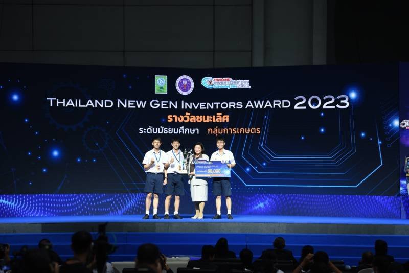 รางวัลสิ่งประดิษฐ์ระดับเยาวชน ในการประกวดเวที Thailand New Gen Inventors Award : I-New Gen Award 2023 ระดับมัธยมศึกษา กลุ่มที่ 1 การเกษตร รางวัลชนะเลิศ ได้แก่ ผลงานเครื่องระบุระดับความสุกของมะม่วงน้ำดอกไม้ จากโรงเรียนวิทยาศาสตร์จุฬาภรณราชวิทยาลัย เพชรบุรี จังหวัดเพชรบุรี รางวัลรองชนะเลิศ อันดับ 1 ได้แก่ ผลงานการพัฒนาฟาร์มวัวอัจฉริยะ โดยการนำ Image processing ควบคุมการทำงานเพื่อเพิ่มประสิทธิภาพและความแม่นยำในการจัดการฟาร์ม จากโรงเรียนธรรมวิทยามูลนิธิ จังหวัดยะลา รางวัลรองชนะเลิศ อันดับ 2 ได้แก่ ผลงานเครื่องปอกกระเทียมพร้อมสับพลังงานลมเพื่อส่งเสริมกลุ่มแปรรูปพริกหมู่บ้านหนองบง อำเภอคง จังหวัดนครราชสีมา เวอร์ชั่น 4 จากโรงเรียนเมืองคง จังหวัดนครราชสีมา