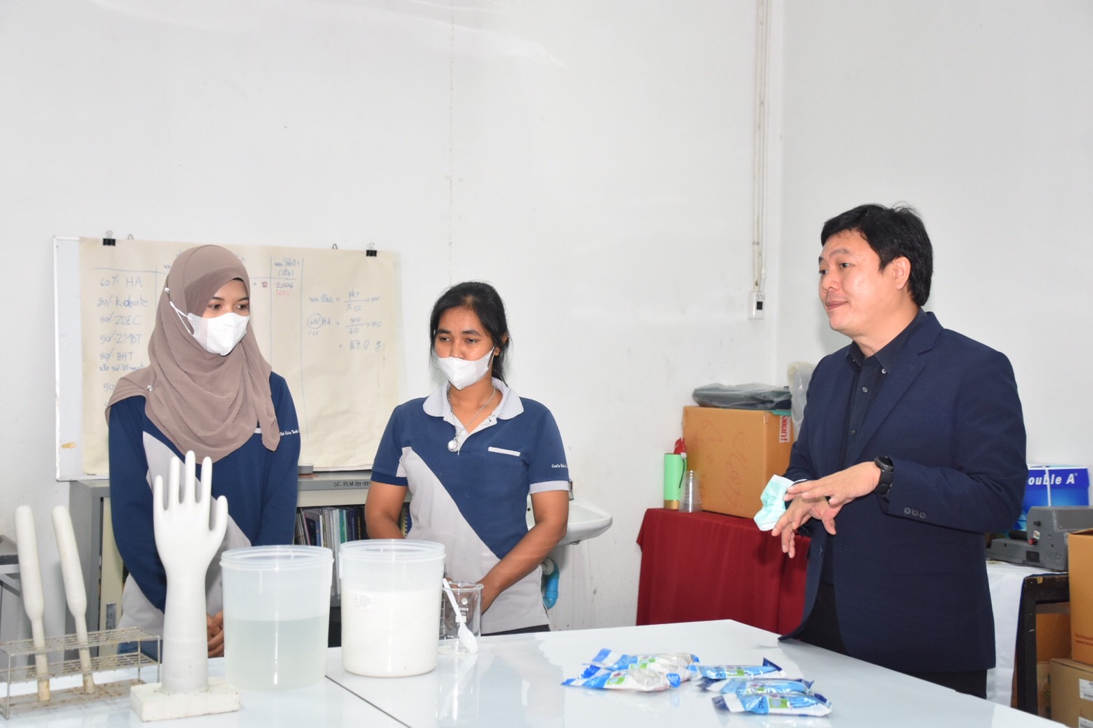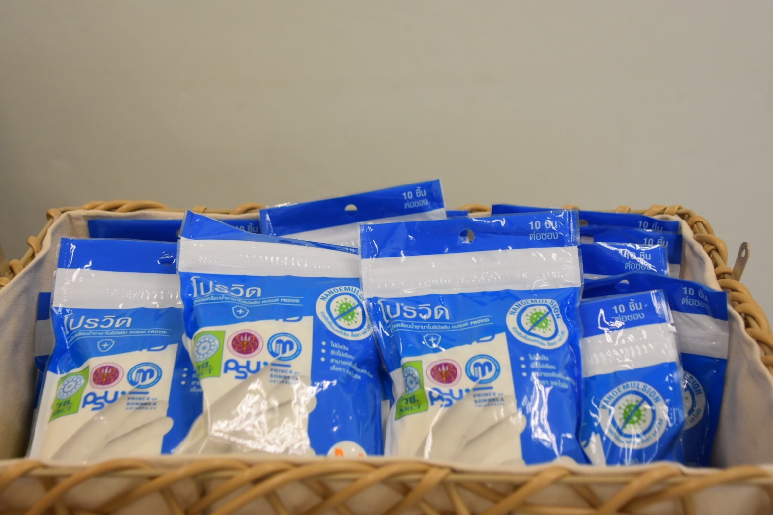 ผศ.นพ.วรวิทย์ วาณิชย์สุวรรณ กล่าวว่า โครงการวิจัยการพัฒนาถุงมือยางธรรมชาติเคลือบน้ำยานาโนอิมัลชันป้องกันโรคติดเชื้อไวรัส Covid-19 เพื่อใช้ในพื้นที่เสี่ยงด่านสะเดา อำเภอสะเดา จังหวัดสงขลา ได้รับทุนสนับสนุนการวิจัยจาก วช. เพื่อผลิตถุงมือยางพาราเคลือบน้ำยานาโนอิมัลชัน ซึ่งเป็นถุงมือที่สามารถฆ่าเชื้อได้ด้วยตนเอง ผลจากการทดสอบในห้องปฏิบัติการด้วยการนำถุงมือยางพาราและถุงมือไนไตรที่ผลิตจากยางสังเคราะห์มาเคลือบสูตรน้ำยานาโนอิมัลชันเพื่อปรับแต่งโครงสร้างพื้นผิวถุงมือยางให้มีคุณสมบัติกำจัดและฆ่าเชื้อโรคด้วยตนเอง คือสารนาโนอิมัลชันที่เคลือบบนถุงมือยางมีประสิทธิภาพในการฆ่าเชื้อแบคทีเรีย เชื้อราและเชื้อไวรัสได้ ประสิทธิภาพในการฆ่าเชื้ออยู่ได้ประมาณ 24 ชั่วโมง ถุงมือดังกล่าวได้ผลิตจากยางธรรมชาติไนไตรเคลือบน้ำยานาโนอิมัลชัน ซึ่งจะเพิ่มต้นทุนในการผลิตประมาณคู่ละ 0.50 – 1.00 บาท สำหรับผลที่ได้จากโครงการนี้จะทำให้ถุงมือยางมีความปลอดภัยในการใช้งาน ลดการปนเปื้อน และป้องกันการติดเชื้อจากการสัมผัสลงได้ โดยกลุ่มเป้าหมายนำไปใช้ คือผู้ปฏิบัติงานที่ด่านตรวจคนเข้าเมืองสะเดา อำเภอสะเดา จังหวัดสงขลา เพราะเป็นพื้นที่เสี่ยงต่อการแพร่ระบาดของเชื้อโควิด-19 ที่นำมาจากประเทศเพื่อนบ้าน และกลุ่มผู้ปฏิบัติงานในชุมชนต่าง ๆ ในพื้นที่จังหวัดสงขลา