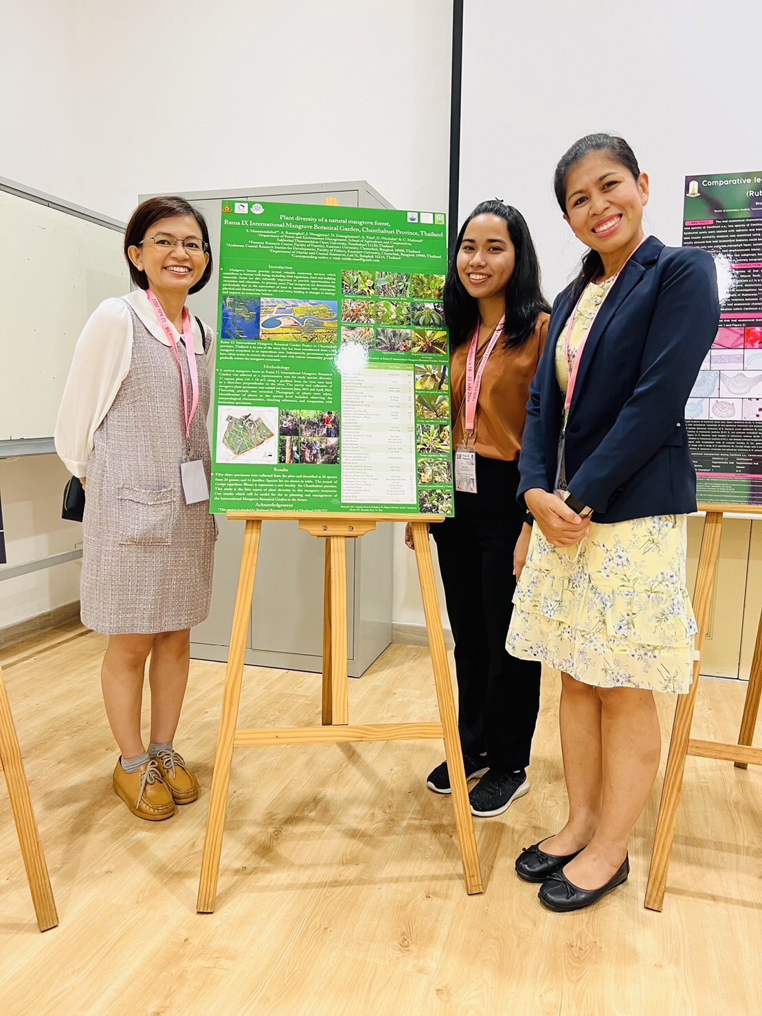 สำนักงานการวิจัยแห่งชาติ (วช.) กระทรวงการอุดมศึกษา วิทยาศาสตร์ วิจัยและนวัตกรรม ให้การสนับสนุนทีมวิจัยจากมหาวิทยาลัยสุโขทัยธรรมาธิราช (มสธ.) มหาวิทยาลัยเกษตรศาสตร์ (มก.) และกรมทรัพยากรทางทะเลและชายฝั่ง (ทช.) ศึกษาวิจัยระบบนิเวศป่าชายเลน บริเวณพื้นที่โครงการสวนพฤกษศาสตร์ป่าชายเลนนานาชาติ ร.9 จังหวัดจันทบุรี เพื่อสำรวจและศึกษาความหลากหลายทางชีวภาพทั้งพันธุ์ไม้ สัตว์ป่า แพลงก์ตอนพืช แพลงก์ตอนสัตว์ สัตว์หน้าดินและสัตว์น้ำ รวมถึงลักษณะทางนิเวศ เพื่อวิเคราะห์ความสัมพันธ์การเจริญเติบโตของไม้ป่าชายเลน สภาพทางอุทกวิทยา และปฐพีวิทยาในสวนป่าชายเลน ประเมินการกักเก็บคาร์บอนของป่าชายเลนในพื้นที่โครงการ ศึกษาแนวทางการสร้างความตระหนักและเพิ่มศักยภาพชุมชนท้องถิ่นโดยรอบพื้นที่โครงการในการมีส่วนร่วมบริหารจัดการป่าชายเลนและทรัพยากรชายฝั่ง ตลอดจนศึกษาแนวทางการฟื้นฟูและเสริมสร้างระบบนิเวศป่าชายเลน ในพื้นที่โครงการอย่างยั่งยืน ในโครงการสวนพฤกษศาสตร์ป่าชายเลนนานาชาติ ร.9 จังหวัดจันทบุรี
