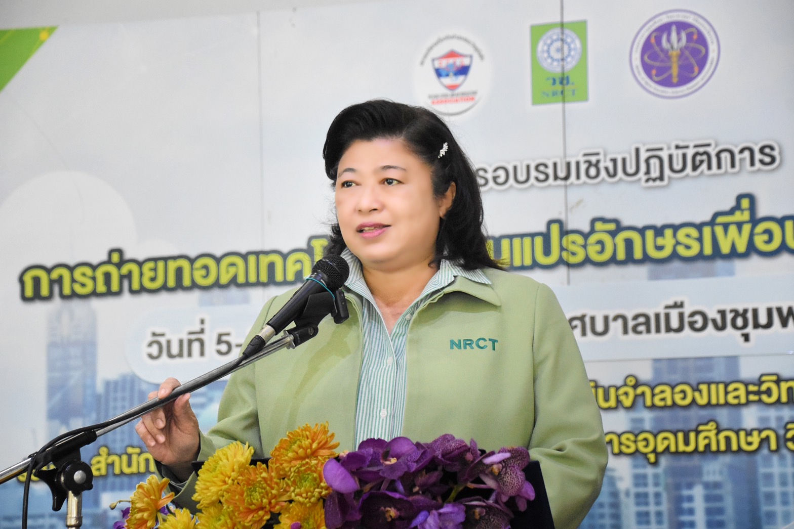 วันที่ 5 มิถุนายน 2566 ที่ผ่านมา สำนักงานการวิจัยแห่งชาติ (วช.) กระทรวงการอุดมศึกษา วิทยาศาสตร์ วิจัยและนวัตกรรม ร่วมกับ สมาคมกีฬาเครื่องบินจำลองและวิทยุบังคับ จัดพิธีเปิดกิจกรรมส่งเสริมและสนับสนุนการวิจัยและนวัตกรรม “การอบรมเชิงปฏิบัติการถ่ายทอดเทคโนโลยีโดรนแปรอักษรเพื่อประยุกต์สู่การใช้งาน” ภาคใต้ ครั้งที่ 1 ระหว่างวันที่ 5 – 7 มิถุนายน 2566 โดยมี ดร.วิภารัตน์ ดีอ่อง ผู้อำนวยการสำนักงานการวิจัยแห่งชาติ เป็นประธานในพิธีเปิดการอบรมฯ เพื่อถ่ายทอดองค์ความรู้เทคโนโลยีที่ทันสมัยเกี่ยวกับ “โดรนแปรอักษร” และการพัฒนาซอฟแวร์โดรนเพื่อนำไปประยุกต์ใช้งาน พร้อมนี้ นายวิสาห์ พูลศิริรัตน์ ผู้ว่าราชการจังหวัดชุมพร นายพิศิษฐ์ มิตรเกื้อกูล นายกสมาคมกีฬาเครื่องบินจำลองและวิทยุบังคับ นายศรีชัย วีระนรพานิช นายกเทศมนตรีเมืองชุมพร พร้อมด้วย ผู้บริหารหน่วยงานในจังหวัดชุมพร คณะผู้ทรงคุณวุฒิ วช. และสื่อมวลชน เข้าร่วมในพิธีฯ ณ เทศบาลเมืองชุมพร จังหวัดชุมพร