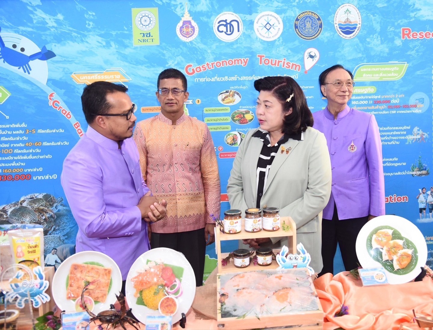 ภายหลังการแถลงข่าว คณะผู้บริหาร วช. และหน่วยงานต่าง ๆ ได้เยี่ยมชมการจัดแสดงนิทรรศการตัวอย่างตัวอย่างผลงานวิจัยและกิจกรรม Highlight จำนวน 4 ผลงาน ได้แก่ 1. ผลงาน “ธนาคารปูม้า” โดย ผศ.ดร.อมรศักดิ์ สวัสดี ผู้อำนวยการศูนย์บริการวิชาการ มวล. 2. ผลงาน “วิธีการอบและการใช้ประโยชน์ไม้ปาล์มน้ำมันในรูปแบบใหม่แบบครบวงจร” โดย รศ.ดร.นิรันดร มาแทน หัวหน้าศูนย์ความเป็นเลิศด้านไม้และวัสดุชีวภาพ มวล. 3. ผลงาน “ยกระดับน้ำมันปาล์มดิบ จากเกรดอาหารสัตว์เป็นเกรดเวชสำอาง” โดย รศ.ดร.หมุดตอเล็บ หนิสอ หัวหน้าศูนย์ความเป็นเลิศด้านการจัดการธุรกิจท่องเที่ยวและเศรษฐกิจสร้างสรรค์ มวล. และ 4. ผลงาน “งานวิจัยเด่นด้านเทคโนโลยีและนวัตกรรมอาหาร” โดย รศ.ดร.มนัส ชัยจันทร์ หัวหน้าศูนย์ความเป็นเลิศด้านเทคโนโลยีและนวัตกรรมอาหาร มวล.