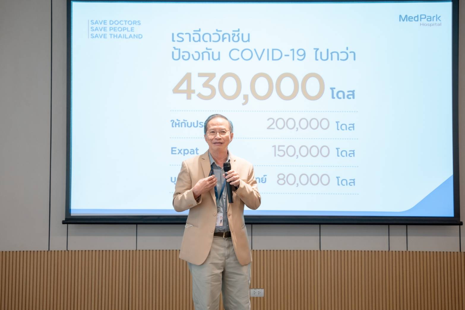โรงพยาบาลเมดพาร์คตระหนักและเข้าใจถึงความสำคัญในการดูแลสุขภาพของบุคลากรแพทย์ ด้วยแนวคิดที่ว่า “เพราะแพทย์หนึ่งคนสามารถช่วยชีวิตประชาชนได้อีกนับหมื่นคน” จึงริเริ่มโครงการ “Save Doctors Save People Save Thailand” ในปี 2564 ด้วยการวัคซีนให้แพทย์และบุคลากรทางการแพทย์ในช่วงการแพร่ระบาดโควิด-19  เพราะแพทย์เป็นปราการด่านสำคัญในการรับมือกับวิกฤติการณ์ ณ ขณะนั้น และในปีต่อมาได้ต่อยอดโครงการอาสาดูแลหัวใจหมอ Save Doctors' Heart เปิดโอกาสให้แพทย์ทั่วประเทศเข้ารับการตรวจคัดกรองโรคทางหัวใจ โดยแพทย์ที่เข้าร่วมโครงการกว่า 1,200 คน ตรวจพบความผิดปกติจำนวน 12 คน และได้รับการรักษาอย่างทันท่วงที ไม่ว่าจะเป็นการสวนหัวใจ ผ่าตัดหัวใจ ทำบอลลูน นับเป็นความสำเร็จของโครงการที่ช่วยชีวิตบุคลากรแพทย์ไว้ได้