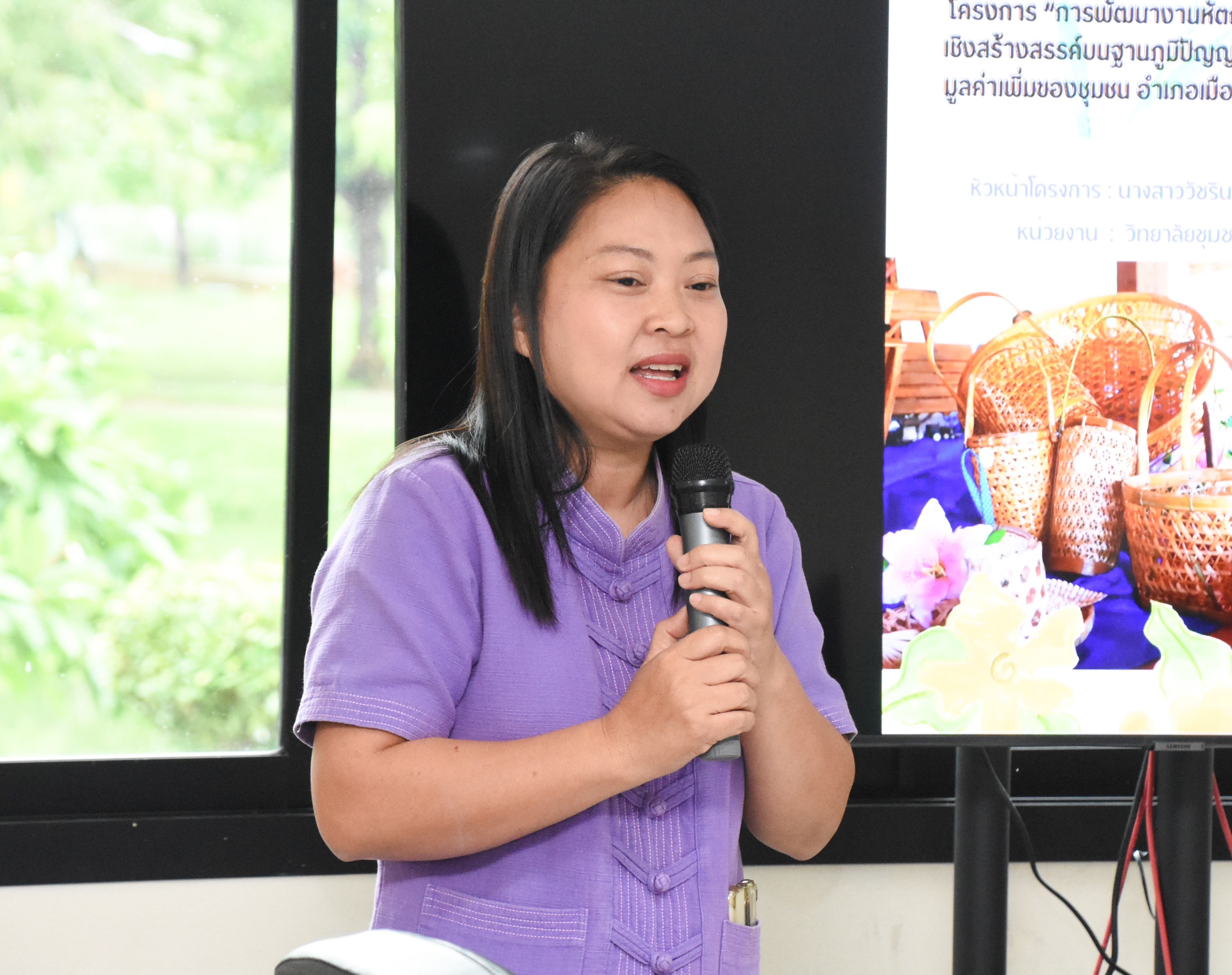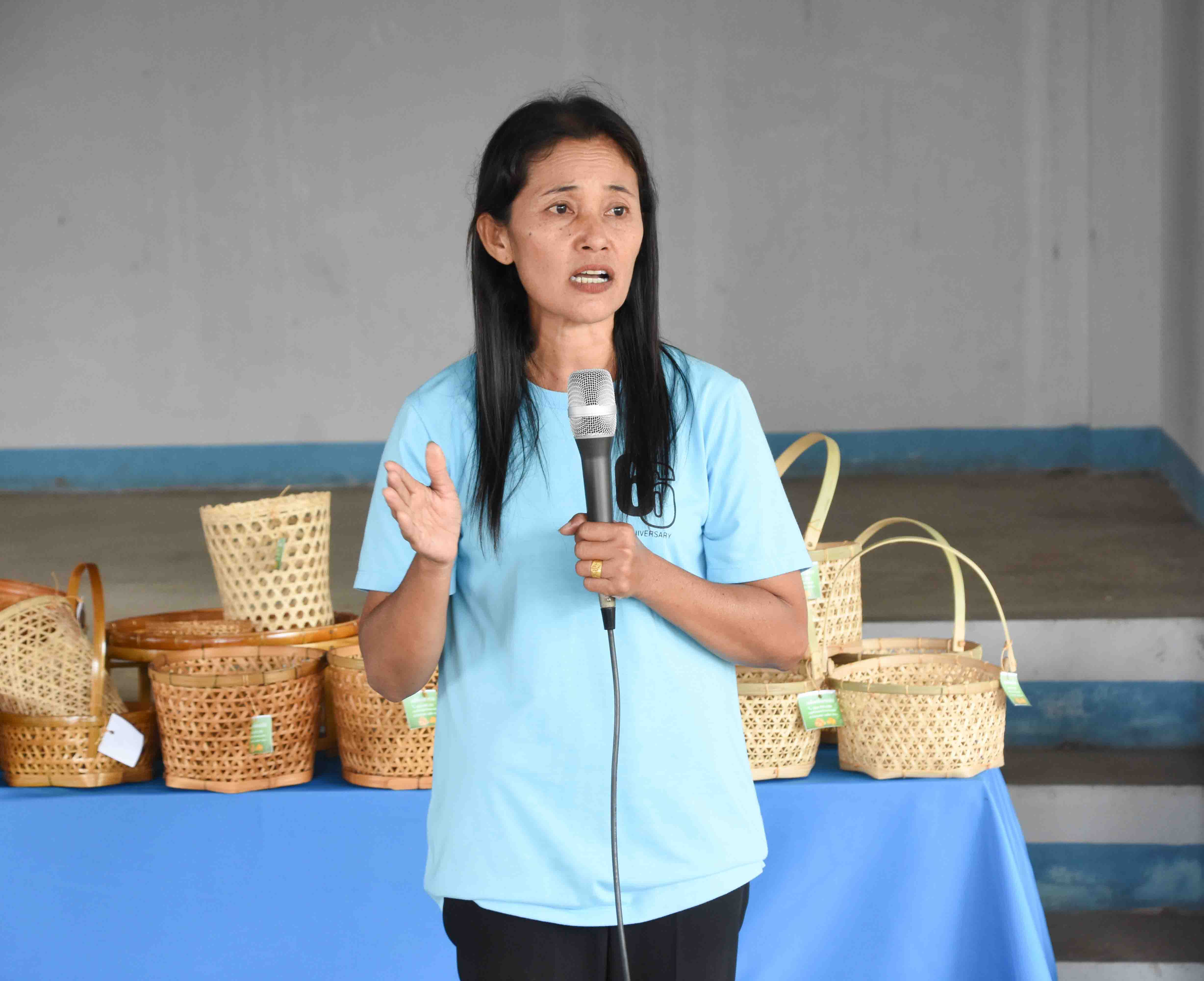 นางสาววัชรินทร์รัตน์ ศรีสมุทร หัวหน้าโครงการ กล่าวว่า ตำบลน้ำริม ตำบลตลุกกลางทุ่ง ตำบลโป่งแดง และตำบลวังประสบ อำเภอเมืองตาก จังหวัดตาก ส่วนใหญ่ประกอบอาชีพเกษตรกร ทำงานจักสานเป็นอาชีพเสริม แต่ในพื้นที่กลับมีไม้ไผ่น้อยและไม่มีคุณภาพ จึงต้องไปซื้อไม้ไผ่จากจังหวัดข้างเคียงทำให้มีต้นทุนสูง และชุมชนขาดการรวมกลุ่มในการต่อรองราคา ทำให้ถูกกดราคาจากพ่อค้าคนกลาง อีกทั้งผลิตภัณฑ์ยังไม่ได้มาตรฐาน รูปแบบผลิตภัณฑ์ไม่มีความหลากหลายและไม่ตรงกับความต้องการของผู้บริโภค จากปัญหาดังกล่าว วิทยาลัยชุมชนตากได้ร่วมกันหารือกับเครือข่ายที่จะพัฒนาองค์ความรู้ ความคิดเชิงสร้างสรรค์ พัฒนางานหัตถกรรมจักสานให้มีคุณภาพ โดยเริ่มศึกษาบริบทพื้นที่ ความเป็นมาของลวดลายการขัดสานไม้ไผ่ รูปแบบการจักสานและปัญหาของการจักสานไม้ไผ่ของชุมชน รวมถึงหารูปแบบผลิตภัณฑ์หัตถกรรมจักสานไม้ไผ่เชิงสร้างสรรค์แบบมีส่วนร่วม เพื่อให้ได้รูปแบบที่เป็นอัตลักษณ์ของพื้นที่ และสร้างมูลค่าเพิ่มให้กับผลิตภัณฑ์ ซึ่งถือเป็นการยกระดับสินค้างานหัตถกรรมจักสานให้แก่ชุมชน นอกจากนี้ยังสร้างอาชีพ และสร้างรายได้ให้กับคนในชุมชนอำเภอเมืองตาก จังหวัดตาก