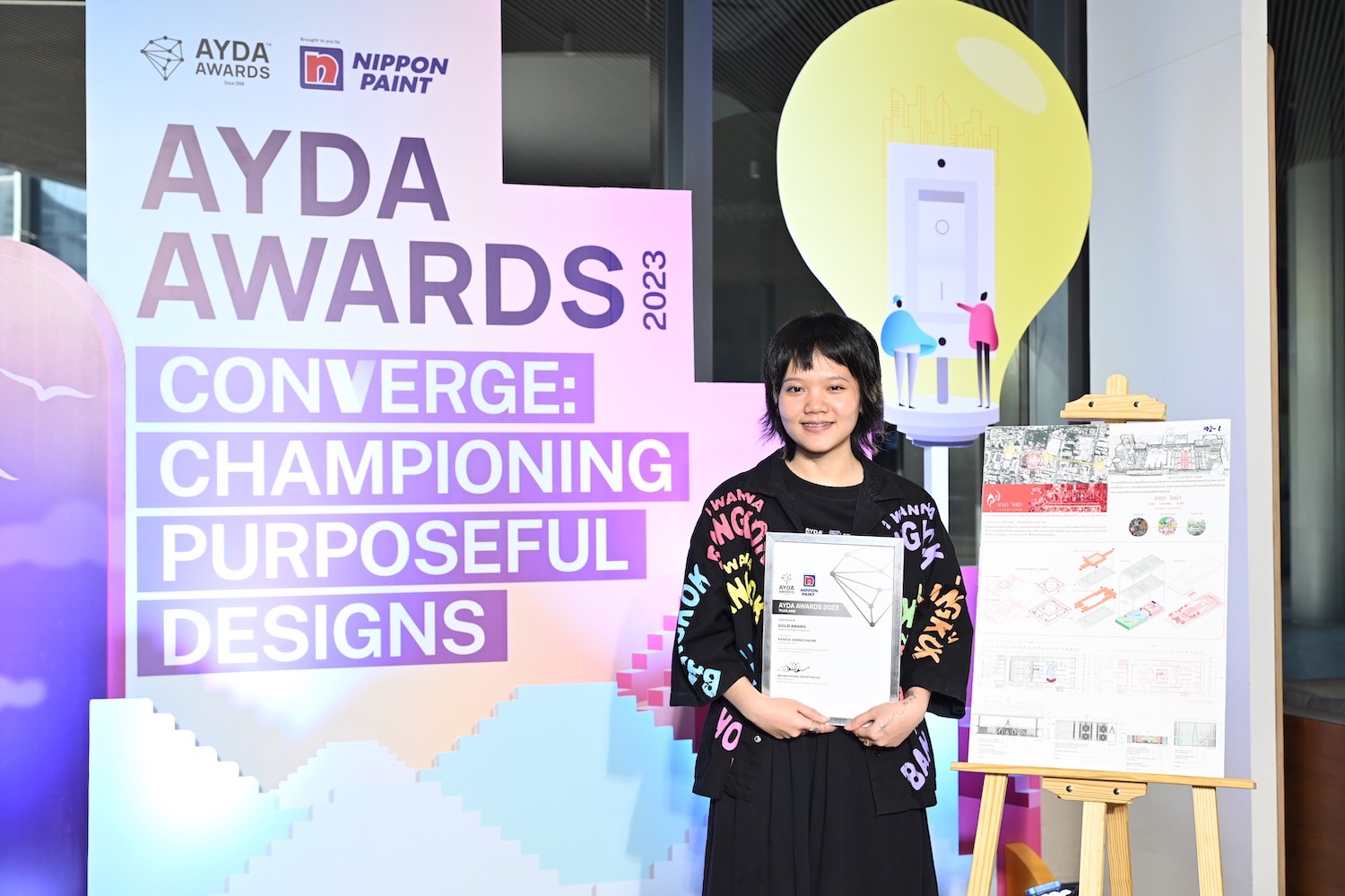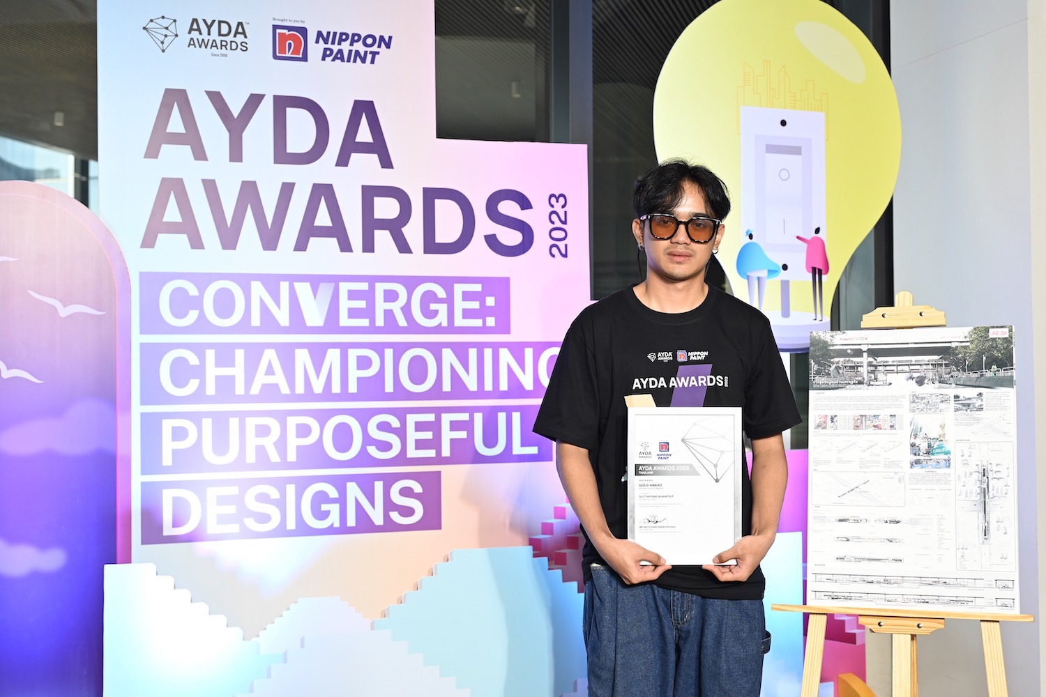 นายสุทธิพงค์ คามทิตย์ หรือน้องรอยคีน นักศึกษาจากมหาวิทยาลัยขอนแก่น ผู้ชนะ Gold Winner Architectural กล่าวว่า “จากความอยากรู้อยากเห็น ชอบอ่านผลงานวิจัยต่างๆ แล้วได้พบเจอปัญหาของผู้คนริมคลองแสนแสบ กลายเป็นที่มาของงานออกแบบสถาปัตยกรรม “จากชุมชนสู่คนย่านเศรษฐกิจ” โดยตั้งแต่เข้ามาเรียนคณะสถาปัตยกรรมศาสตร์ ผมตั้งใจมาตลอดที่จะสร้างสรรค์งานออกแบบ เพื่อช่วยแก้ไขปัญหาที่ผมได้อ่านตามงานวิจัยต่างๆ ให้เป็นรูปธรรมในที่สุด ผมรู้สึกภูมิใจมากที่ได้ถ่ายทอดความท้าทายในการค้นคว้าหาคำตอบผ่านผลงานชิ้นนี้ ที่สร้างประโยชน์และตอบโจทย์ความต้องการของผู้ใช้งานได้อย่างแท้จริง ผมต้องขอขอบคุณเวทีการประกวด AYDA โดยบริษัทนิปปอนเพนต์ เดคโคเรทีฟ โคทติ้ง (ประเทศไทย) จำกัด ที่เปิดโอกาสให้นักออกแบบรุ่นใหม่อย่างผมได้มีพื้นที่แสดงออก และสานฝันหลักการออกแบบให้เป็นรูปธรรมยิ่งขึ้น อีกทั้งยังมอบโอกาสมากมายที่หาจากที่ไหนไม่ได้อีกด้วย อยากฝากถึงผู้เข้าประกวดรุ่นต่อไปว่า การเตรียมความพร้อมในการประกวดบนเวทีนี้ไม่ง่ายเลย ต้องอดทนต่อความเหนื่อยล้า และทุ่มเทเวลาพอสมควร แต่ประสบการณ์และคำแนะนำที่ได้รับจากคณะกรรมการประเมินค่าไม่ได้ ถึงแม้ผลจะออกมาอย่างไร ก็ถือว่าคุ้มค่าที่สุดในชีวิตแล้ว”