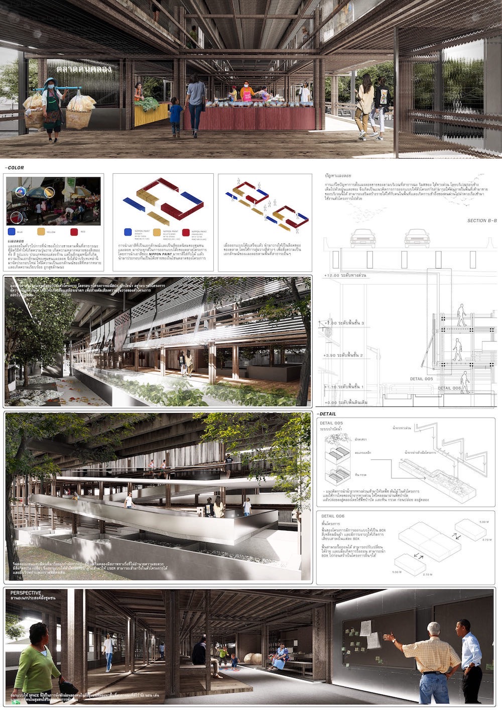 โดยผลงาน “จากชุมชนสู่คนย่านเศรษฐกิจ” ของน้องรอยคีน ได้เกิดจากความชอบส่วนตัวในการอ่านบทความวิจัย แล้วบังเอิญค้นพบปัญหาของผู้อยู่อาศัยริมคลองแสนแสบ ที่มีความหลากหลายทางวัฒนธรรมและอาชีพ เกิดเป็นความท้าทายส่วนตัวที่คิดจะหาทางแก้ปัญหาด้านการจัดสรรพื้นที่ให้เกิดประโยชน์แก่คนในชุมชน จึงเป็นที่มาของผลงาน “จากชุมชนสู่คนย่านเศรษฐกิจ” ที่ขับจุดเด่นของการเชื่อมโยงความแตกต่างของผู้คนสองฟากฝั่ง ทั้งริมคลองและใต้สะพานลอยเพื่อชุมชนน่าอยู่และเป็นระเบียบเรียบร้อย