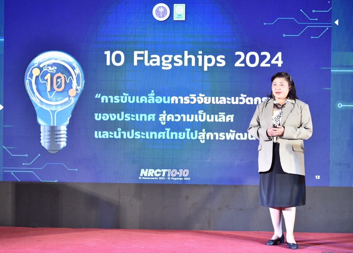 และในปี 2567 วช. ได้ตั้ง Flagships ที่จะขับเคลื่อนยกระดับผลงานวิจัยและนวัตกรรม เพื่อทำให้เกิดผลงานที่มี Impact สูงทางสังคมและเศรษฐกิจ สร้างองค์ความรู้พื้นฐานทางวิชาการ เพื่อตอบโจทย์ท้าทายสำคัญทางสังคม ช่วยลดความเหลื่อมล้ำ และเพิ่มขีดความสามารถในการแข่งขันของประเทศ บรรลุตามเป้าหมายการปฏิรูประบบการอุดมศึกษา วิทยาศาสตร์ วิจัยและนวัตกรรม โดยได้วาง Flagships ไว้ 10 ด้าน