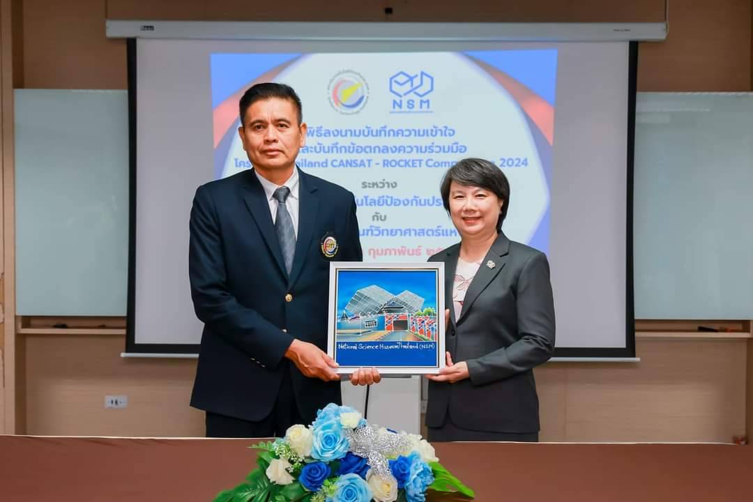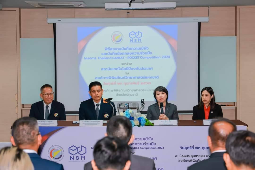 เมื่อวันที่ 23 กุมภาพันธ์ ที่่ผ่านมา ดร.กรรณิการ์ เฉิน รองผู้อำนวยการองค์การพิพิธภัณฑ์วิทยาศาสตร์แห่งชาติ (อพวช.) หรือ NSM พร้อมด้วย น.อ.คมสันต์ ประพันธ์กาญจน์ รองผู้อำนวยการสถาบันเทคโนโลยีป้องกันประเทศ รักษาการแทนผู้อำนวยการสถาบันเทคโนโลยีป้องกันประเทศ (สทป.) ลงนามความร่วมมือเตรียมจัดโครงการการแข่งขัน “Thailand CANSAT - ROCKET Competition 2024” ชิงทุนการศึกษากว่า 100,000 บาท