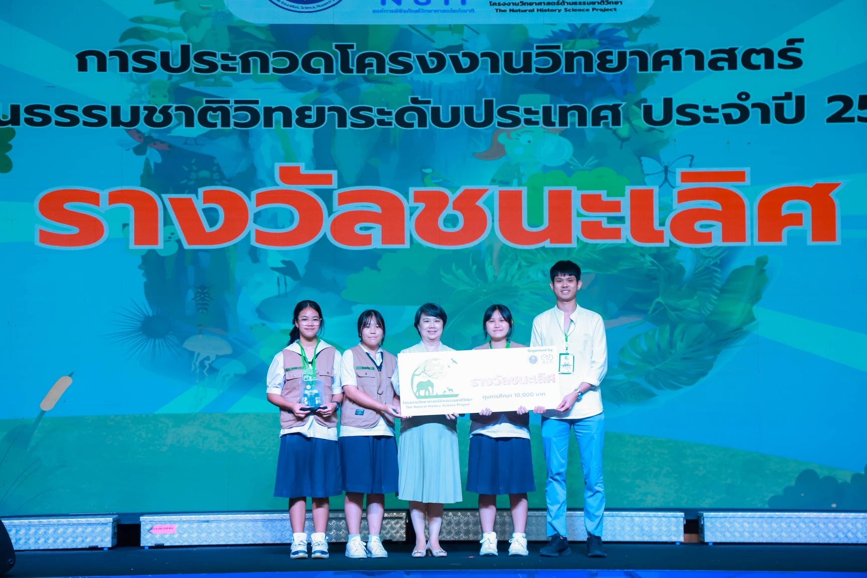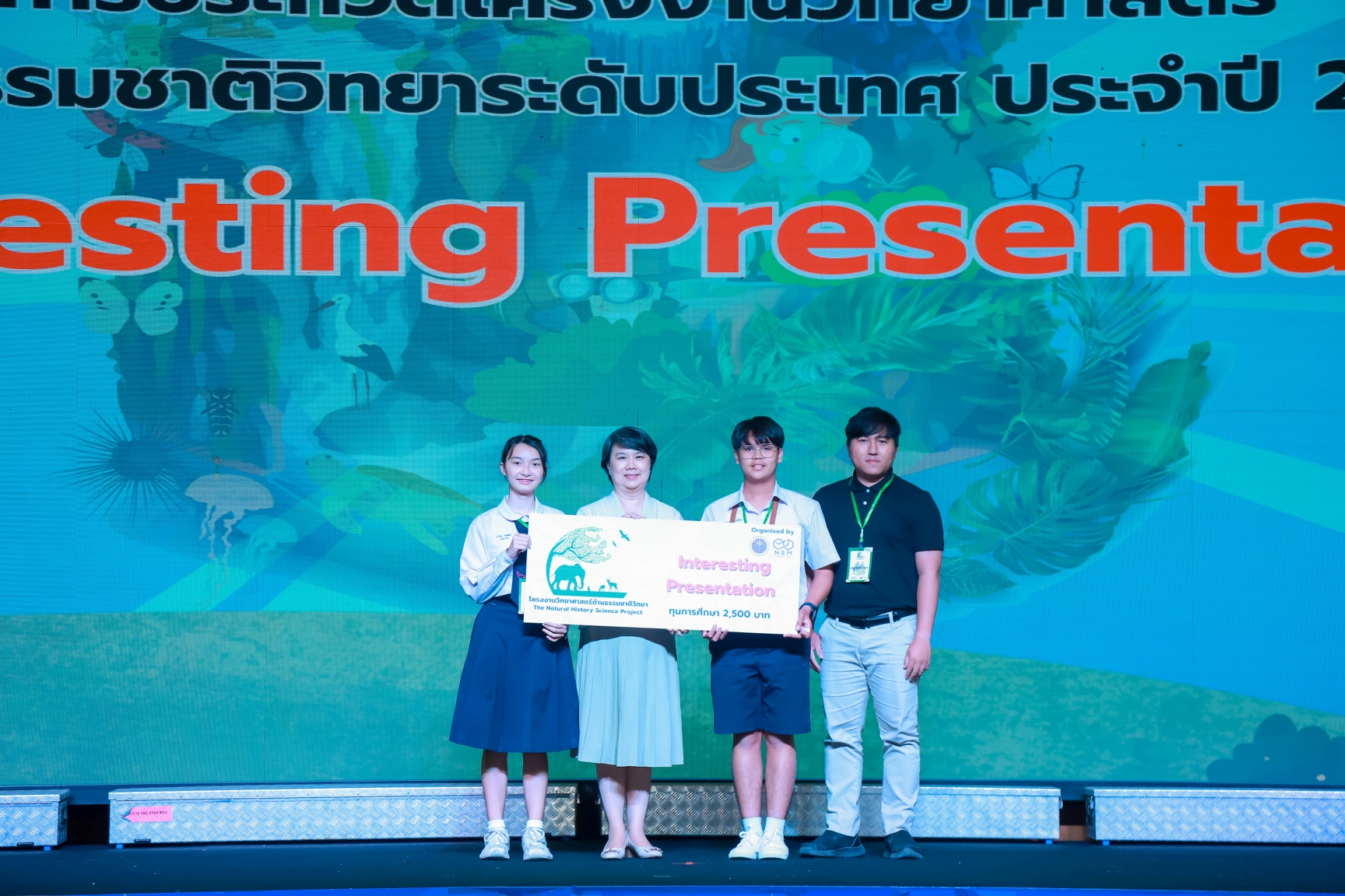 13 มีนาคม 2567 / ดร.กรรณิการ์ เฉิน รองผู้อำนวยการองค์การพิพิธภัณฑ์วิทยาศาสตร์แห่งชาติ (อพวช.) หรือ NSM เป็นประธานมอบรางวัลในการแข่งขันโครงงานวิทยาศาสตร์ด้านธรรมชาติวิทยา ระดับประเทศ ประจำปี 2567 ภายใต้หัวข้อแนวคิด “Discovering local biodiversity” ผลปรากฏว่าทีมโรงเรียนเบญจมเทพอุทิศจังหวัดเพชรบุรี คว้าชัยในโครงงานเรื่อง “ความหลากหลายและความชุกชุมของสัตว์หน้าดินในบ่อนาเกลือ 5 ประเภท บริเวณตำบลปากทะเล อำเภอบ้านแหลม จังหวัดเพชรบุรี” พร้อมรับโล่รางวัลและทุนการศึกษา 10,000 บาท ณ ห้องประชุม IT Auditorium พิพิธภัณฑ์เทคโนโลยีสารสนเทศ NSM ต.คลองห้า อ.คลองหลวง จ.ปทุมธานี