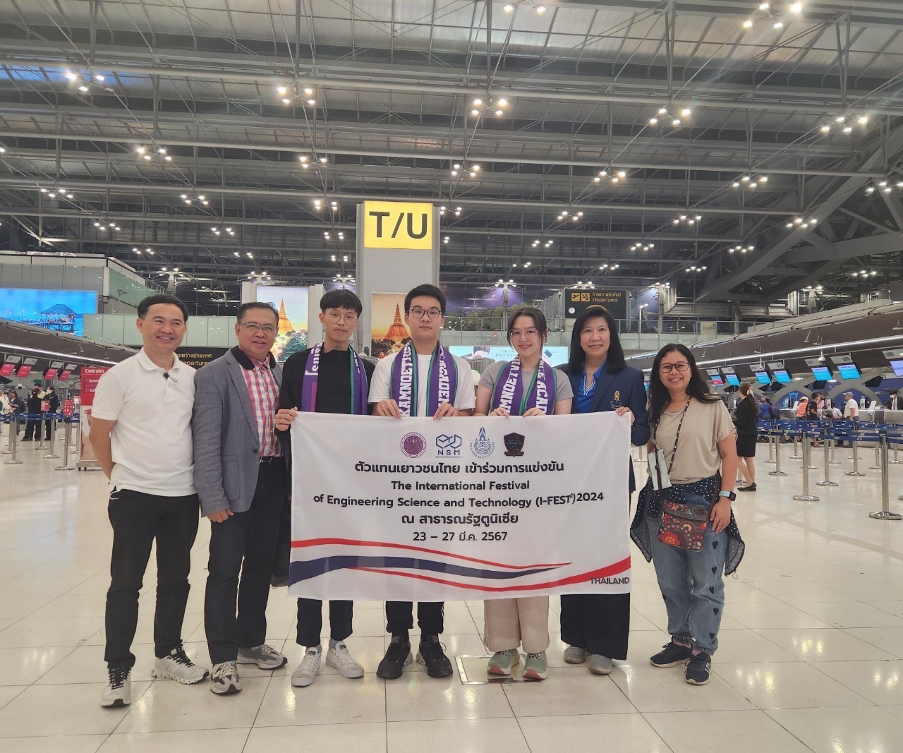 เมื่อวันที่ 21 มีนาคม 2567 ดร.ชนินทร วรรณวิจิตร รองผู้อำนวยการองค์การพิพิธภัณฑ์วิทยาศาสตร์แห่งชาติ (อพวช.) หรือ NSM และรศ.ดร.วรวรรณ พันธุมนาวิน อุปนายกและประธานกิจกรรมเยาวชน สมาคมวิทยาศาสตร์แห่งประเทศไทยในพระบรมราชูปถัมภ์ เดินทางมาให้กำลังใจและส่งเยาวชนไทย ทั้ง 3 ทีม ที่จะเดินทางไปร่วมในการแข่งขันโครงงานวิทยาศาสตร์ The International Festival of Engineering Science and Technology (I-FEST) 2024 ที่จัดขึ้นระหว่างวันที่ 23 - 27 มีนาคม 2567 ณ สาธารณรัฐตูนิเซีย
