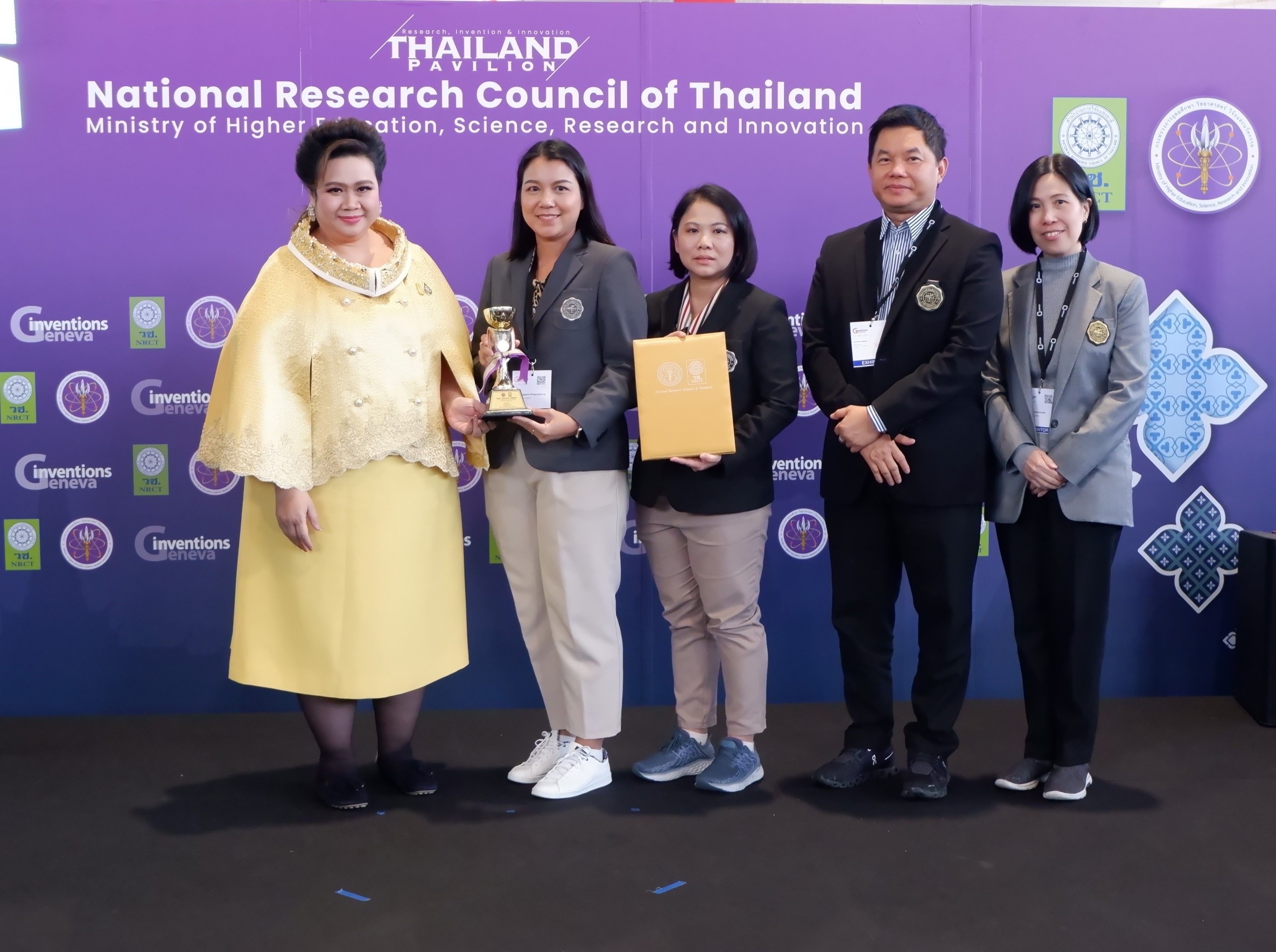 ดร.วิภารัตน์ ดีอ่อง ผู้อำนวยการสำนักงานการวิจัยแห่งชาติ กล่าวว่า จากนโยบายของกระทรวง อว. วช.มีเป้าหมายที่จะนำกลไกการสร้างเครือข่ายความร่วมมือกับองค์กรด้านนวัตกรรมและการวิจัยของนานาประเทศ มาสนับสนุนให้งานวิจัยที่มีศักยภาพของนักวิจัยและนักประดิษฐ์ไทย ได้รับการเผยแพร่ในเวทีระดับสากลและได้รับการยอมรับในมาตรฐานของงาน ในโอกาสนี้ นักวิจัยและนักประดิษฐ์ไทยได้เข้าร่วมการประกวดและจัดแสดงผลงานในเวทีนานาชาติอันทรงเกียรติอย่าง “The 49th International Exhibition of Inventions Geneva” ซึ่งผลงานของนักประดิษฐ์และนักวิจัยไทยได้สร้างความประทับใจและคว้ารางวัลเหรียญทอง รวมถึงรางวัลพิเศษอันทรงเกียรติมาครองได้สำเร็จ ดังนี้